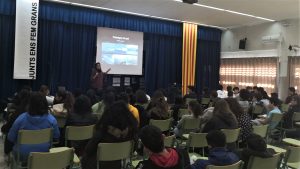 Des del Departament de Ciències i del de Matemàtiques del nostre centre vam intentar que alguna “ambaixadora” del programa “STEM amb tu” vingués al nostre centre a fer-nos una xerrada. Però com per a moltes altres coses, estem molt lluny de Barcelona, i no va ser possible que cap científica del programa es pogués desplaçar fins aquí. Però per fi enguany vam tindre la sort de trobar a Vanessa Balagué, que és d’aquí el costat, de la Ràpita i que el passat divendres va estar amb nosaltres.