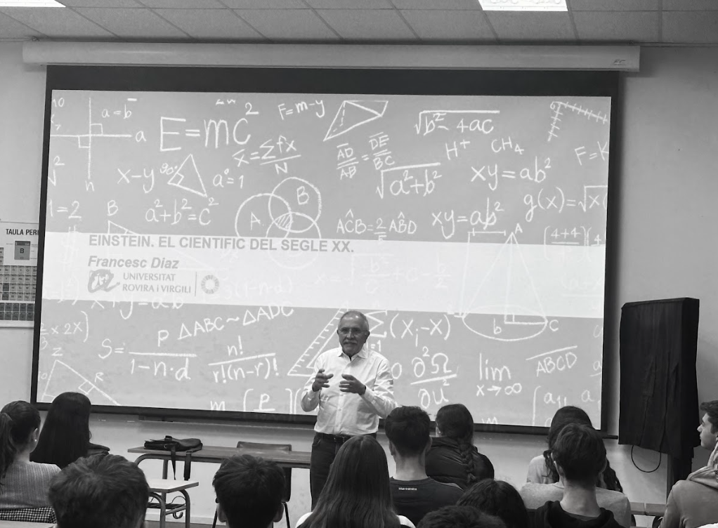 En el marc de la Setmana de la Ciència, l’alumnat de 1r i 2n de Batxillerat de la modalitat de Ciències i Tecnologia ha tingut l’oportunitat de rebre una xerrada sobre Einstein, el científic del segle XX, pel professor emèrit de la URV, Quico Díaz, professor de molts professors/es del Departament de Ciències. Quina vitalitat i passió per la Física! Molt agraïts per la teva aportació! A més, durant aquestes setmanes treballarem amb l’ESO, el coneixement d’Einstein amb l’exposició que tenim al vestíbul. Quànticament preciosa!