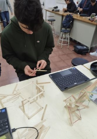L’alumnat de 3r d’ESO les ha construït i ho ha constatat. Sí, efectivament els tensígrads s’aguanten. Sembla a ser que els esforços de tracció compensats amb els de compressió hi tenen molt a veure. Un misteri!
