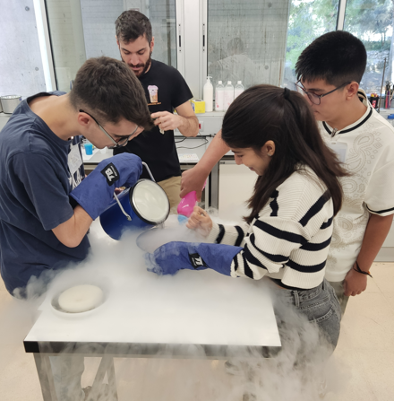 Aquest taller ha estat un dels premis obtinguts en classificar-se a les Miniolimpíades de Química del curs passat. Durant la sessió, realitzada conjuntament amb els altres dos guardonats, els participants han pogut crear i degustar esferificacions de diferents tipus, així com preparar gelats amb nitrogen líquid.