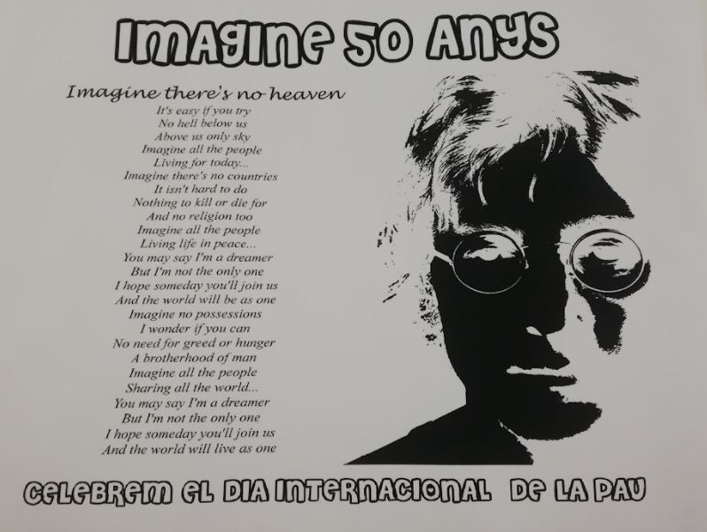 Els alumnes de 1r i 3r van llegir i interpretar de manera col·lectiva la lletra d’Imagine per tal de celebrar el 50è aniversari de la cançó de John Lenon tot i commemorant així el Dia Internacional de la Pau que se celebra el dia 21 de setembre.