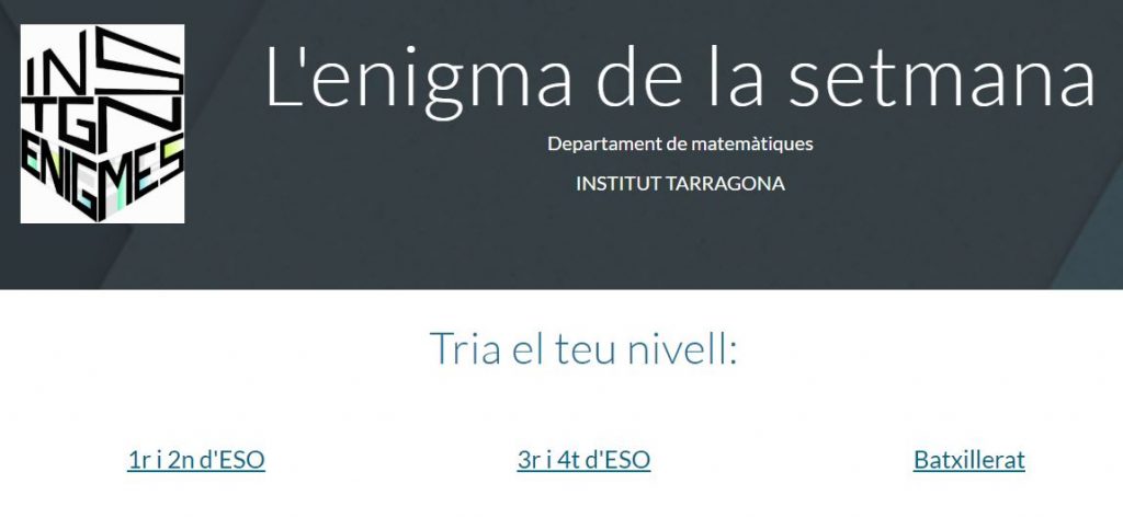 Si t’agraden les mates, si no t’agraden però les vols practicar… ja ho saps! A partir d’ara i cada setmana L’ENIGMA DE LA SETMANA T’ESPERA!