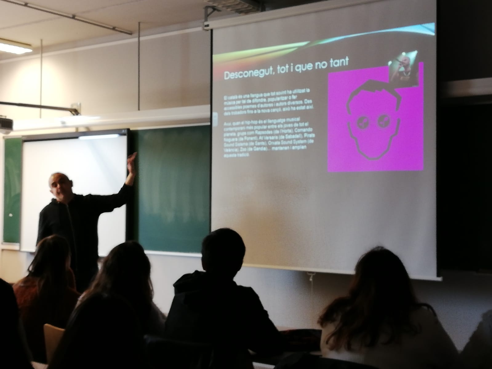 Tot seguit va venir una roda de tres tallers, un sobre la Poesia i el Hip-Hop, un altre sobre Filologia Catalana i el darrer que era la Gimcana de la foto. Com no podia ser d’altra manera, el premi va consistir en una selecció de llibres que l’alumnat de 2n de batxillerat va repartir-se amb molt d’interès.