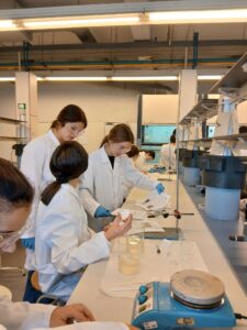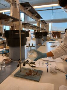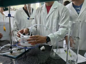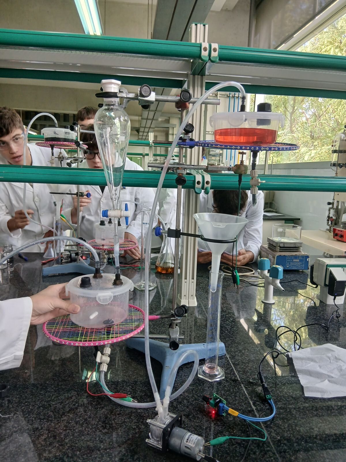 L’investigador Daniel Schorn ens ha preparat un taller al laboratori. En aquest taller han estudiat diferents paràmetres de diferents mostres d’aigua, i amb els resultats derivats d’aquest estudi han estat capaços de diferenciar aquestes aigües segons el seu origen. També han entès la necessitat de dur a terme un procés de tractament de les aigües per tal de millorar les seves propietats.