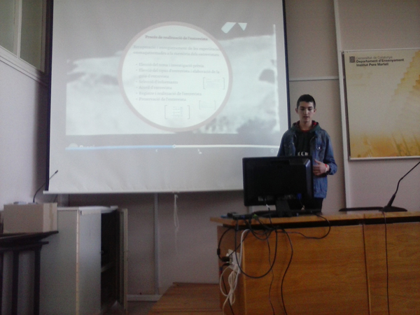 Avui la Mar Folch i l’Oriol Lleonart, alumnes de 2n de Batxillerat, han presentat els seus treballs de recerca als alumnes de 1r de Batxillerat Social i Humanístic en el marc del 12è Fòrum de Treballs de Recerca i Crèdits de Síntesi (TRiCS) organitzat per AEQT i la URV. L’acte s’ha desenvolupat al Complex Educatiu de Tarragona amb la participació de més d’un miler d’estudiants de diferents instituts del Camp de Tarragona. La Mar ha presentat el treball titulat “Sistemes Augmentatius i Alternatius de Comunicació en l’àmbit escolar, i l’Oriol, el titulat “Si teníem pa, ho teníem tot”.