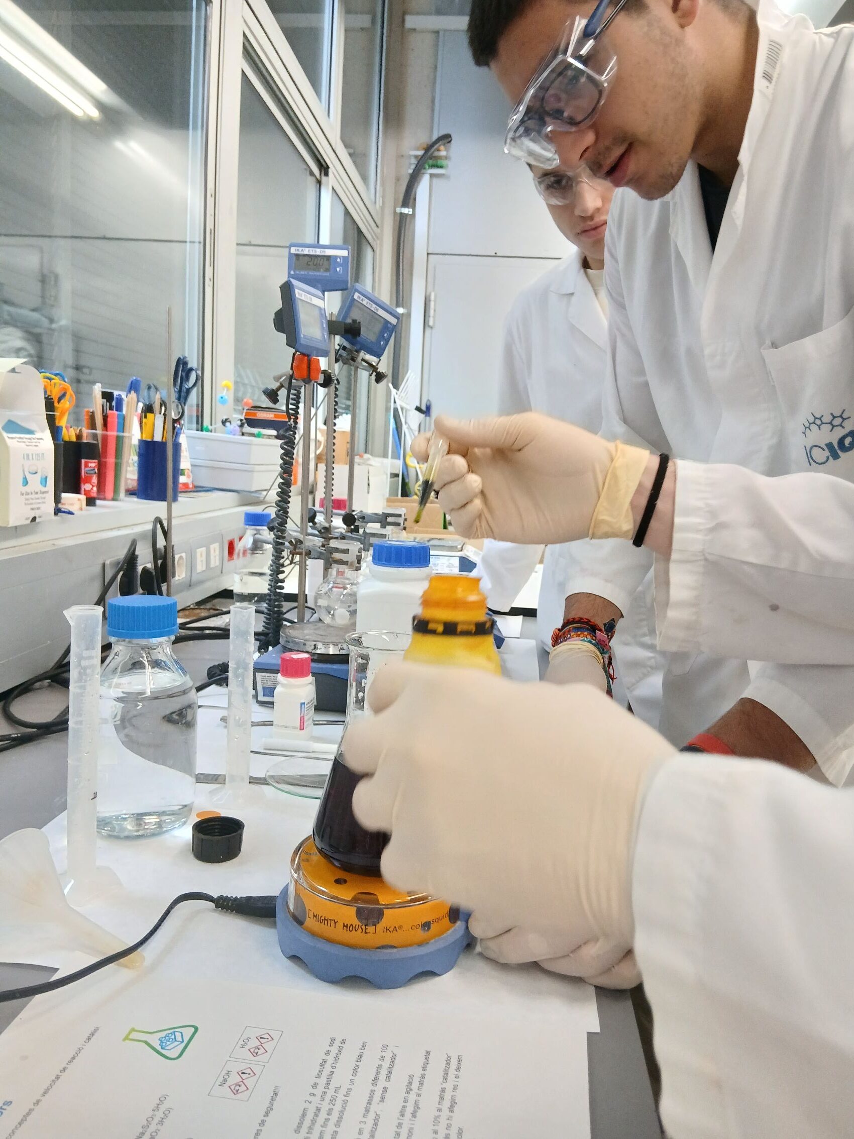 Els alumnes de 2n BAT Científic-Tecnològic, que cursen la matèria de Química, han participat al taller “CATÀLISI A L’AULA”, portat a terme a l’ICIQ (Institut Català d’Investigació Química), a Tarragona. Els alumnes realitzen diferents tipus de reaccions de catàlisi. Aquestes reaccions tenen una importància vital en el món de la indústria, ja que la gran majoria dels productes químics que es comercialitzen impliquen processos catalítics en la seva fabricació. La catàlisi és un procés en el qual s’augmenta la velocitat d’una reacció química per l’acció d’una substància coneguda amb el nom de catalitzador. La recerca en catàlisi és una de les línies principals d’investigació de l’ICIQ. Gairebé tots els grups de recerca desenvolupen catalitzadors. Ha estat un matí molt profitós i engrescador.