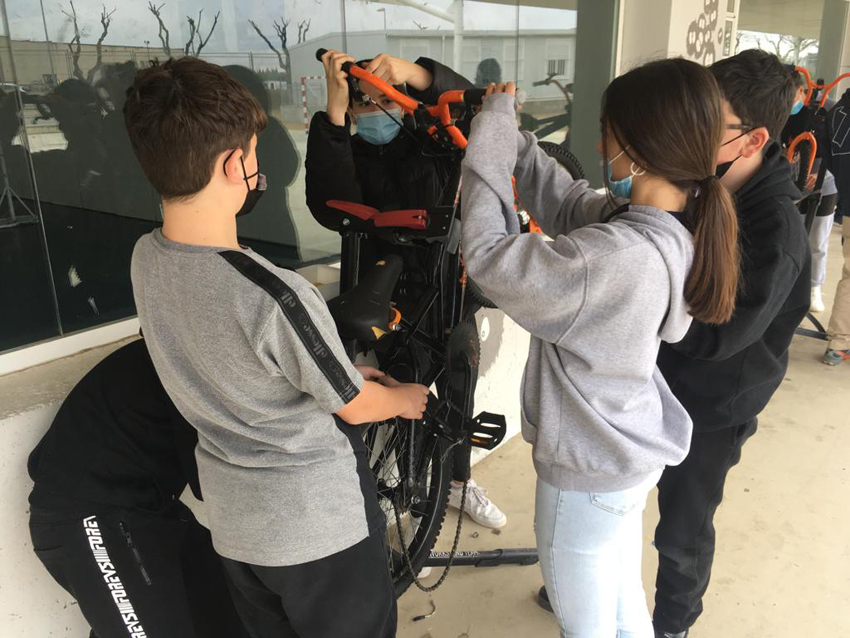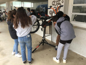 L’alumnat de 1r d´ESO ha realitzat aquests dies un taller de manteniment de bicicletes organitzat pel Servei Català de Trànsit. Els formadors del Servei els han recordat que cal fer un manteniment periòdic de la bicicleta, i els han ensenyat com revisar sobretot els frens, la cadena i la pressió de les rodes.