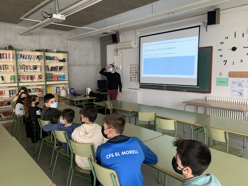 El passat divendres 10 de desembre, per celebrar el Dia Internacional dels Drets Humans (data que commemora el dia en què l’Assemblea General de les Nacions Unides va aprovar la Declaració Universal dels Drets Humans), es va programar una activitat adreçada als delegats mediambientals de 1r i 2n cicle. El Joan Pons, ambientòleg especialitzat en dret ambiental i membre d’INSTA va impartir dues xerrades en les quals va parlar sobre la relació entre el dret humà al medi ambient i els drets de la natura, també va repassar el tractament constitucional del medi ambient i va fer menció d’alguns dels principals conflictes mediambientals plantejats al territori.