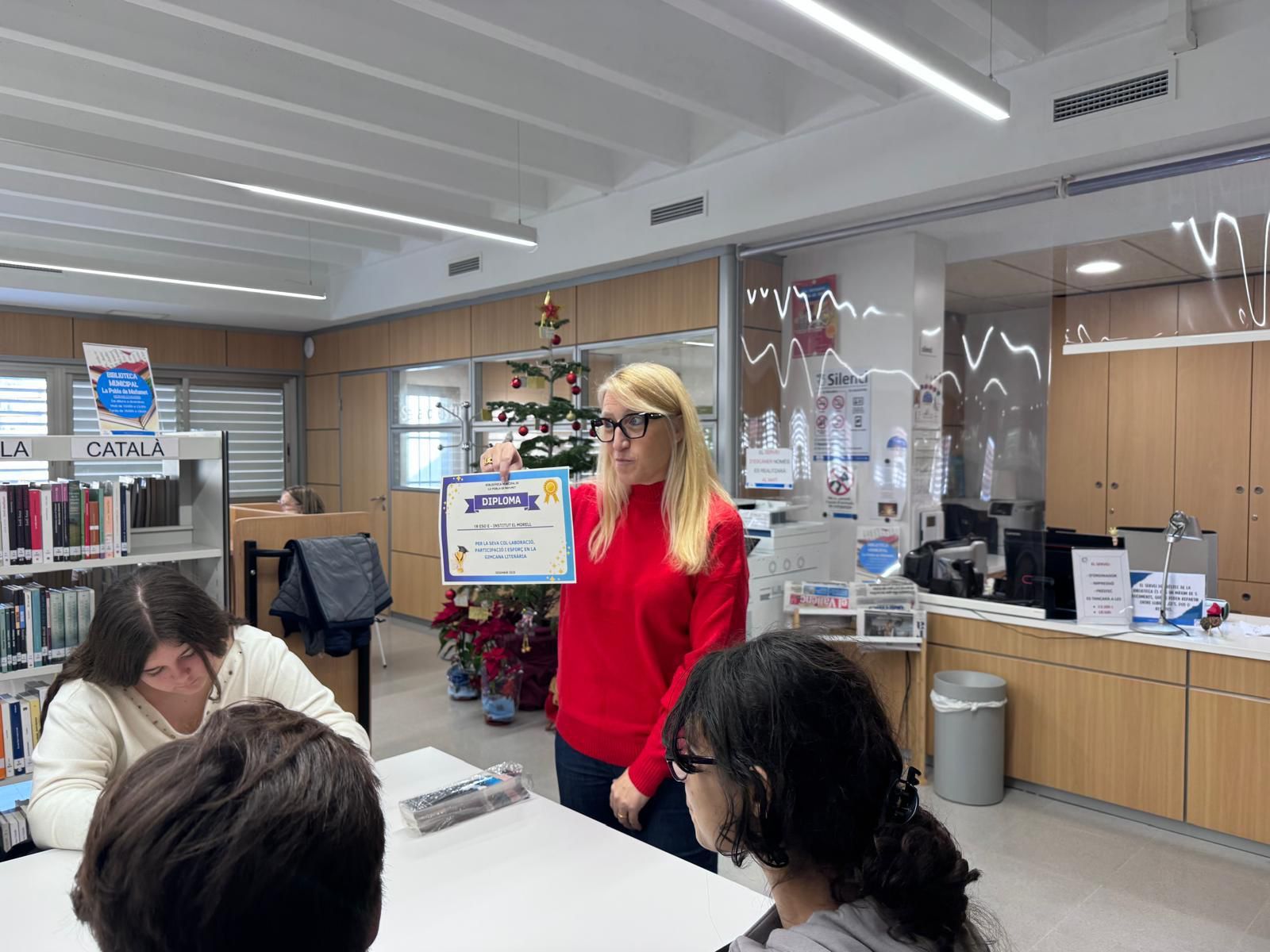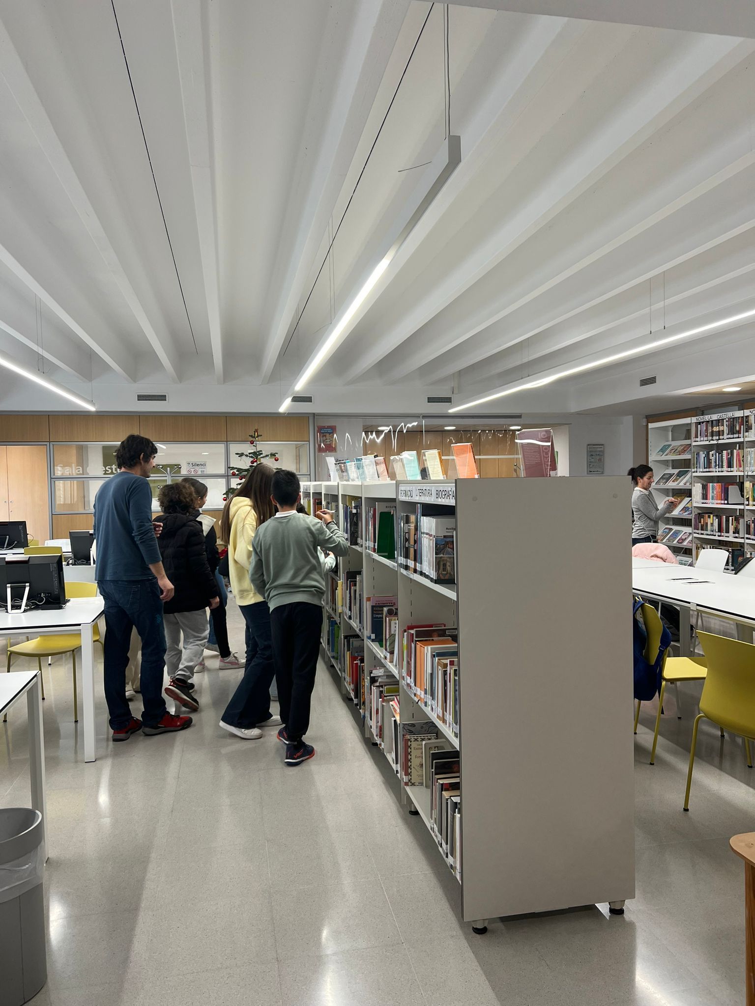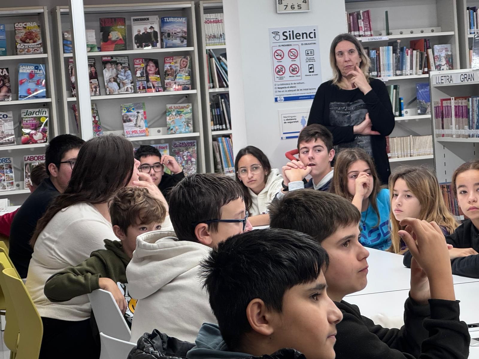 L’alumnat de 1r d’ESO va visitar la Biblioteca de la Pobla de Mafumet amb llurs tutors/es i una professora de la Comissió de Biblioteca. En primer lloc, la bibliotecària els ha dit que una biblioteca era com un gran magatzem ple de llibres, revistes i diaris, on podien llegir, estudiar, fer treballs o demanar llibres en préstec (fins a un màxim de cinc) per a poder-los llegir a casa tranquil·lament durant un mes, ja que els llibres estan a disposició de tothom, però amb un únic requisit: tenir el carnet d’usuari de la biblioteca, el qual és gratuït, personal, intransferible, no caduca i el pot sol·licitar tothom. I també, cada divendres de 17h a 19h hi ha Jocs de taula amb família i amics, la qual cosa té molta acceptació. A més de Clubs de lectura infantils i per a adults. Aquesta biblioteca, tot i ser petita, disposa d’un gran nombre de llibres, però com que està incorporada a la xarxa de biblioteques públiques de Catalunya, té accés a tots el llibres que vulguin. Està oberta de dilluns a divendres de 10h a 13h30 i de 16h a 19h. Tot seguit, els ha explicat que els llibres estan distribuïts per seccions: la infantil, la de novel·la juvenil, la de novel·la d’adults, la d’obres temàtiques, la de còmics i la de diccionaris, atles i revistes. També, que cada llibre conté un teixell, que no és res més que una etiqueta de paper blanc que hom enganxa al llom de cada llibre, la qual conté la classificació del document i les tres lletres del cognom de l’autor/a.