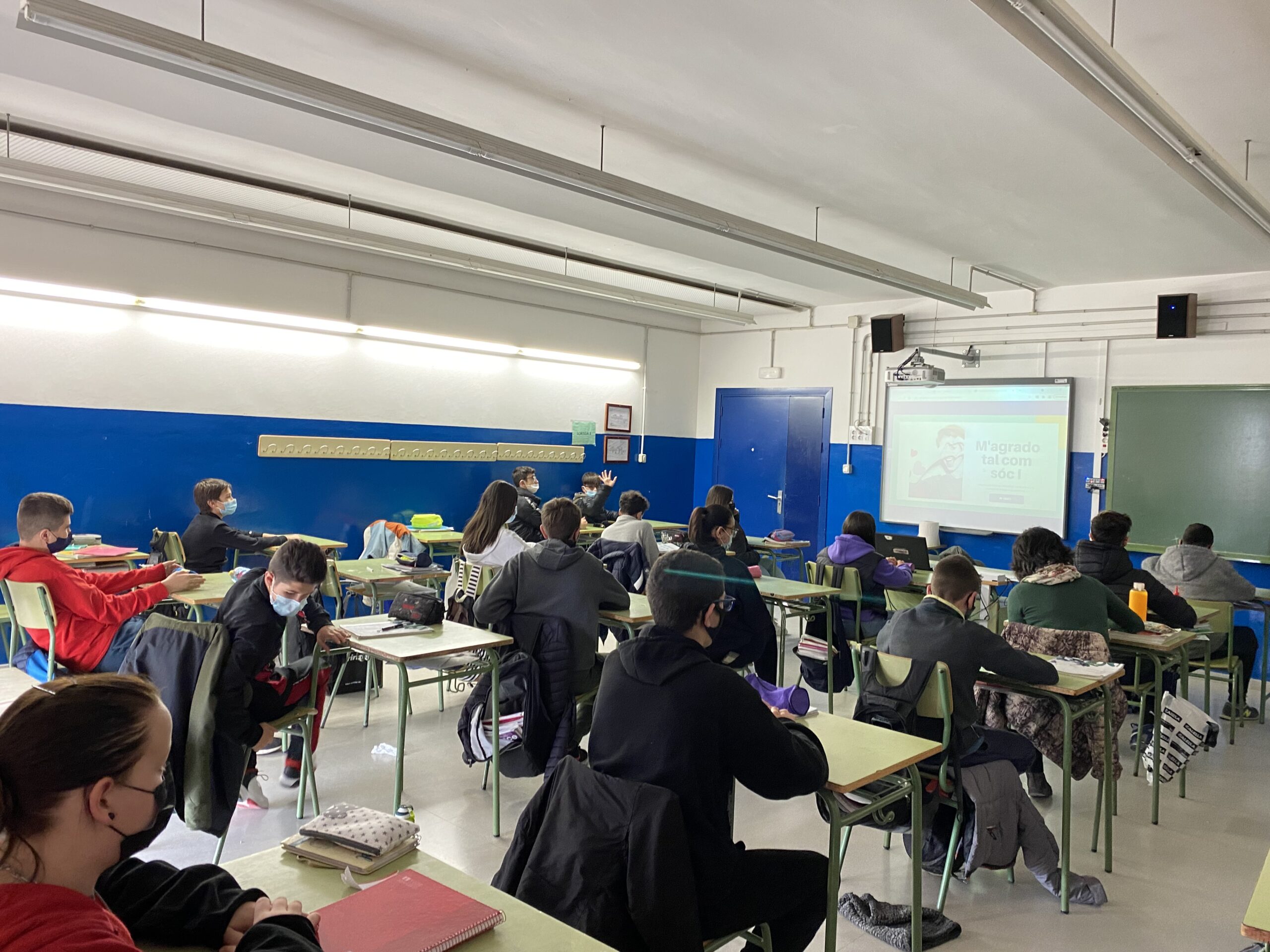 L’alumnat de 2n d’ESO ha realitzat el taller “M’agrado tal com sóc” que han impartit al nostre centre una parella de formadors de l’Associació contra l’anorèxia i la bulímia. l’Associació està desenvolupant un programa de prevenció de trastorns de la conducta alimentària i promoció de la salut en el marc del qual s’ofereixen diferents activitats formatives per infants i adolescents, famílies i personal docent i sanitari. Els tallers que tenen una durada de dues hores tracten diferents conceptes relacionats amb l’autoestima i la visió que tenim del nostre cos. Aquest és el segon any que venen al nostre institut.