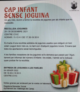 Un grup d’alumnes de 3r d’ESO de l’Ins. El Morell ha col·laborat en la campanya “Cap infant sense joguina” organitzada per la regidoria de Benestar Social de l’Ajuntament de Vilallonga. Els dies 29 i 30 de desembre han participat en la recollida de joguines que s’ha dut a terme al Centre Cívic de la vila.
