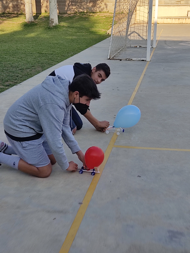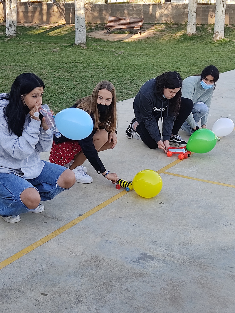 Avui hem començat les classes de física a 3r de la ESO amb una carrera de bòlids. L’objectiu és treballar conceptes com els de desplaçament, trajectòria, velocitat, i altres. Hi ha hagut premi pel més ràpid, pel que ha arribat més lluny i pel millor disseny.