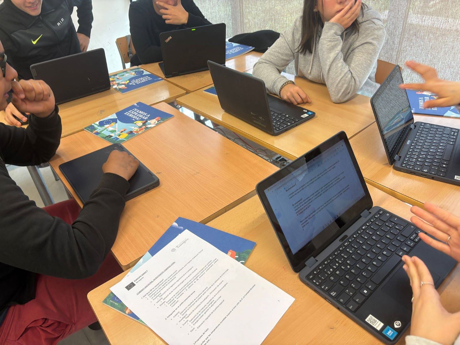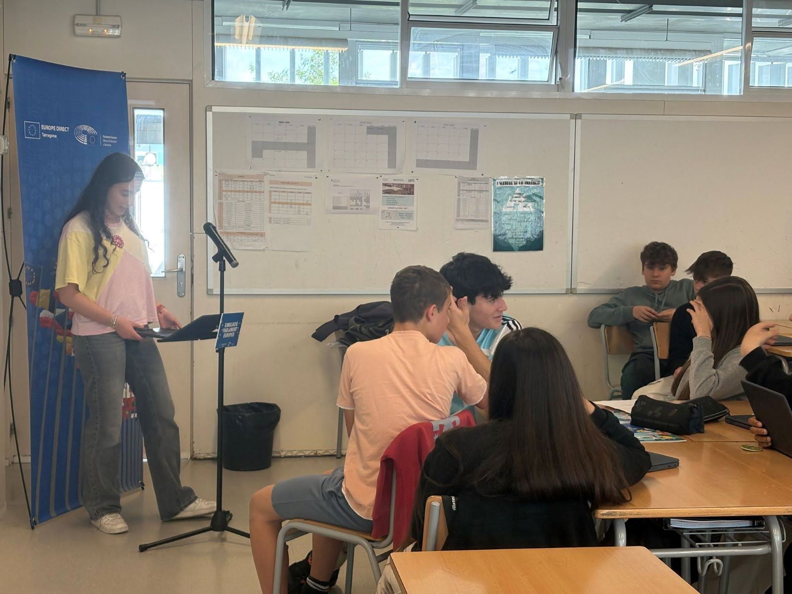 Al llarg d’aquesta setmana, Marta Domenech, la directora de l’oficina Europe Direct de Tarragona, ha estat impartint una hora de xerrada sobre la Unió Europea i dues hores de taller de simulació parlamentària a cada grup de 3r d’ESO. Es tracta d’una activitat vivencial i d’immersió en el funcionament del parlament europeu on l’alumnat es posa en la pell dels europarlamentaris/àries. Aprenen el procediment d’elaboració i aprovació de les propostes de llei, a treballar per comissions i a debatre en les diferents famílies ideològiques parlamentàries. Ha estat una experiència molt profitosa.