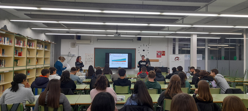 L’alumnat de 4t d’ESO de l’itinerari cientÃfic-tecnològic ha assistit a un taller monogrà fic sobre l’hidrògen renovable impartit per professors de la URV, en col·laboració amb la Diputació de Tarragona. En aquest taller s’ha tractat de la transició dels models energètics basats en els combustibles fòssils cap a models basats en fonts renovables. Els alumnes han fet una activitat amb un cotxe, al qual li han insertat una cel·la de combustible que produeix hidrògen a partir de l’electròlisi de l’aigua. L’hidrògen obtingut s’utilitza per fer moure el cotxe. El ponent també ha demostrat la producció d’energia elèctrica de fonts renovables amb un aerogenerador a escala i una cel·la de combustible d’hidrògen.