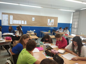 Durant la reunió l’alumnat van treballar agrupats per cursos per preparar una exposició que es durà a terme durant la setmana del 25 de novembre, en motiu del Dia contra la violència de gènere.