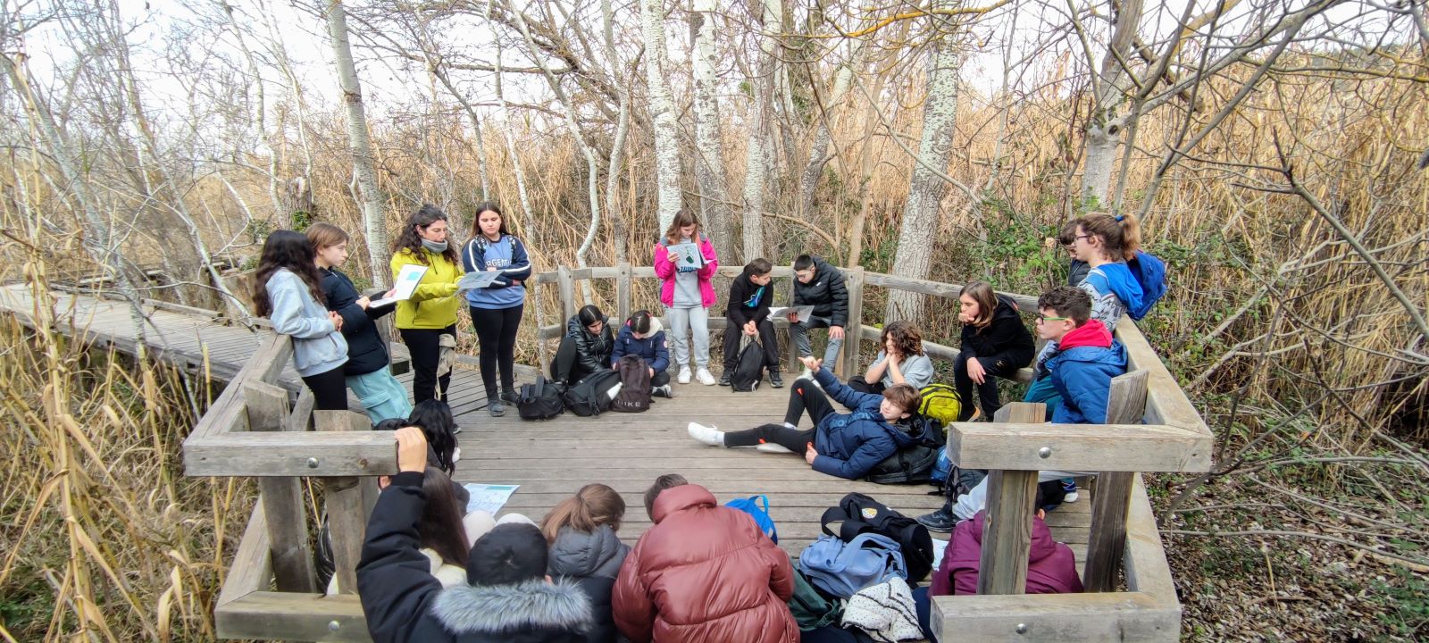 Els dies 5, 6 i 7 de febrer l’alumnat de 1r ESO va realitzar una sortida al Camp d’Aprenentatge de Flix, en concret a la Reserva Natural de Sebes. El grup va fer un itinerari per aquest espai natural i on van poder fer un seguit d’activitats per identificar i conèixer els arbres que formen part del bosc de ribera, també van observar ocells amb prismàtics i van conèixer la importància dels cavalls de la Camarga en la conservació de les zones humides.
