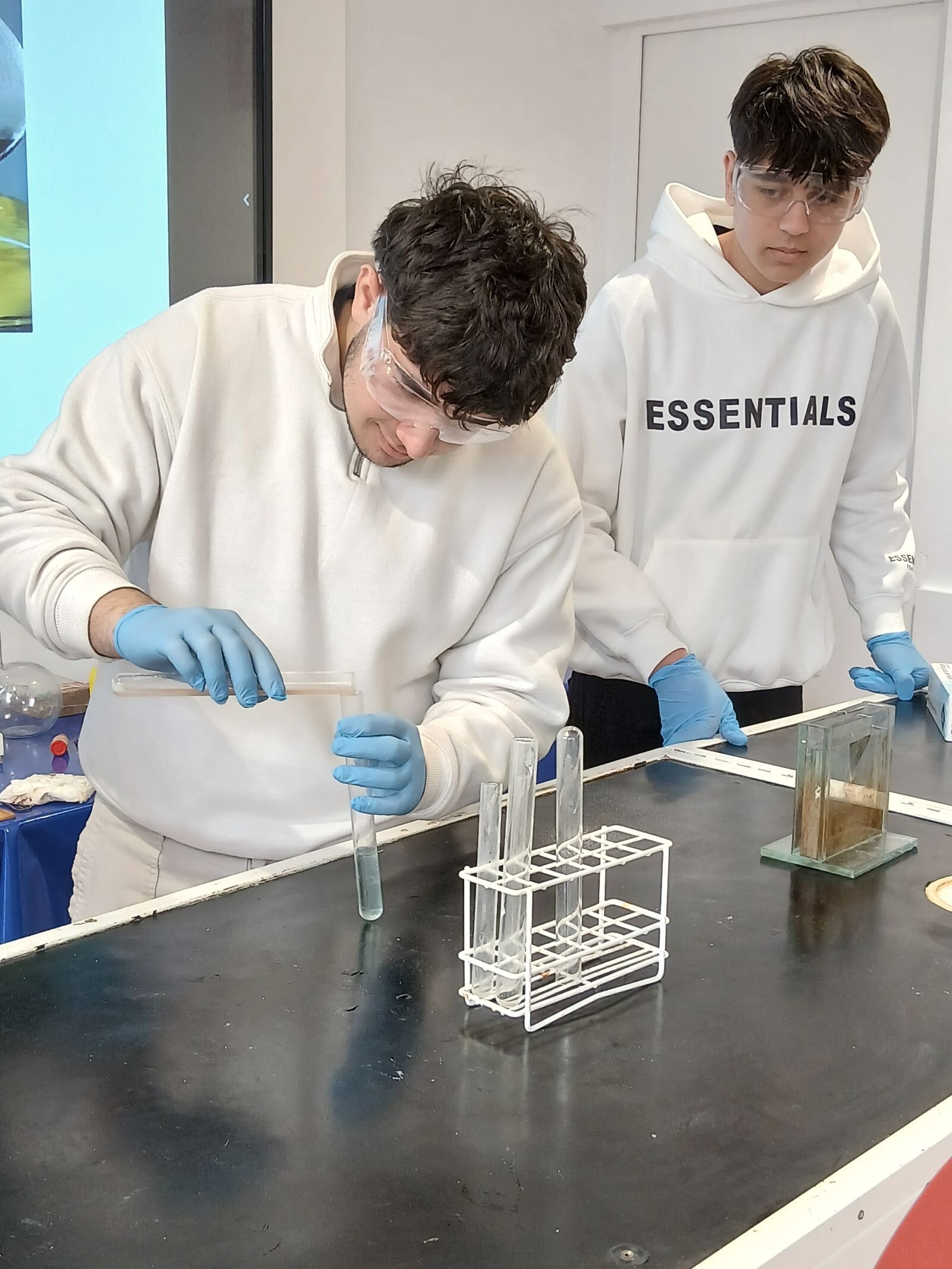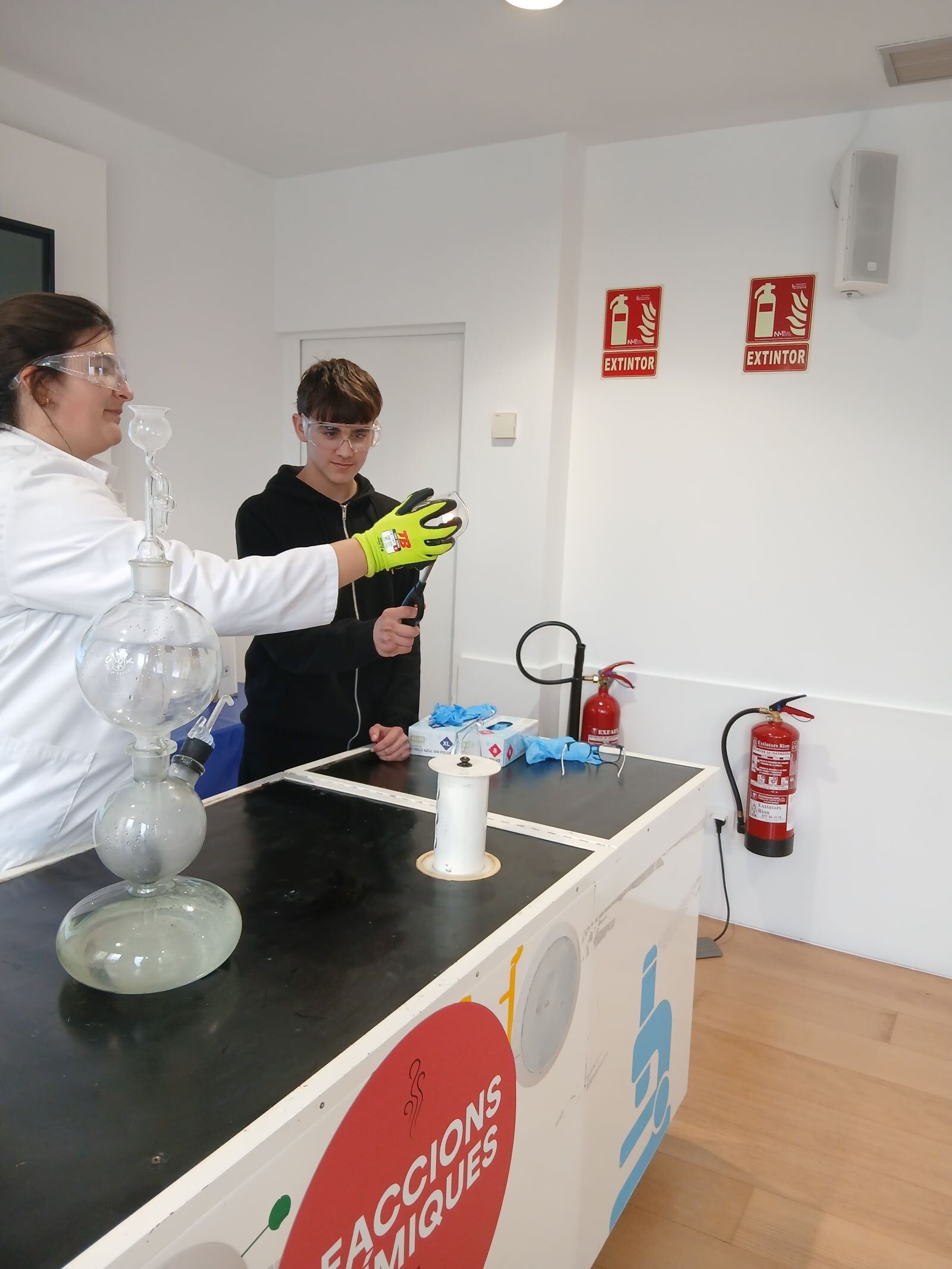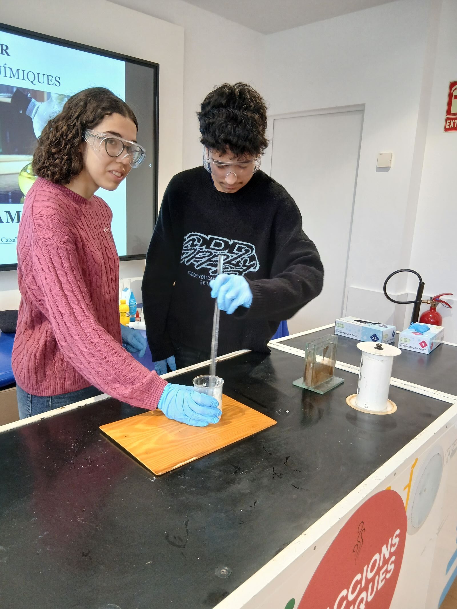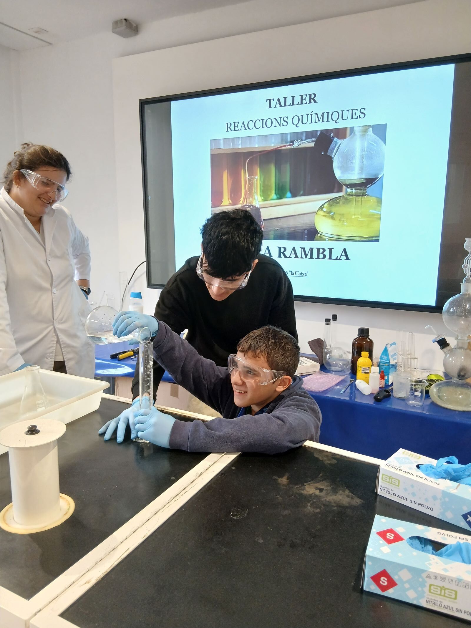L’alumnat de 4t d’ESO de l’assignatura de física i química va assistir el passat dimecres 4 de març al Caixaforum Tarragona per realitzar un taller de reaccions químiques. En primer lloc van repassar diferents conceptes com element, compost, substància pura, mescla homogènia, mescla heterogènia…i diversos materials de laboratori. Van poder veure com tenen lloc diferents reaccions químiques: exotèrmiques, endotèrmiques, de combustió, d’oxidació-reducció, de formació d’un gas, de neutralització…. Posteriorment van participar en una activitat tipus escape room relacionada amb la química.