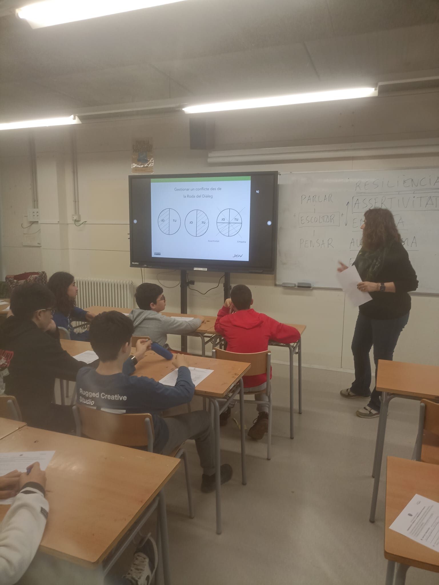 L’alumnat de 1r i 2n d’ESO ha realitzar un taller de benestar emocional en el marc del programa d’Educació Emocional del centre. Una formadora de la Fundació Tu Ceiba a 1r d’ESO i una formadora de la Fundació Jov a 2n d’ESO han conduït els tallers que es fan en grups de quinze nois i noies amb l’objectiu que l’alumnat disposi d’un espai i un moment per fer-se conscient de les seves emocions i poder expressar-les amb sinceritat i respecte, amb el convenciment que poder explicar el que senten contribueix al seu benestar. Aquests tallers han estat subvencionats per l’Ajuntament de la Pobla de Mafumet.