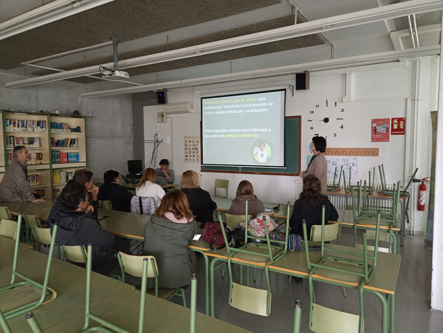 Aquest dimecres 20 d’abril hem rebut la visita d’un grup de professors de dos centres del Camp de Tarragona que estan iniciant el camí per incorporar-se al programa Escoles Verdes, l’Institut Lluís Domènech i Montaner de Reus i l’institut Fontanelles de Les Borges del Camp. L’Institut El Morell va ser seleccionat com a centre padrí per explicar la nostra experiència com a escola verda i ajudar els dos instituts a iniciar-se en aquest món de la sostenibilitat. Ha estat una tarda molt agradable i profitosa!