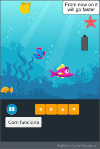 Totes les participants compartíem el mateix itinerari formatiu de Code.org i vam realitzar, en parelles, un videojoc de navegador de creació pròpia i fent servir l’anglès. Posteriorment, aquests jocs es van compartir amb la resta de companyes de projecte a la plataforma eTwinning, acompanyats d’un vídeo de presentació també en anglès.