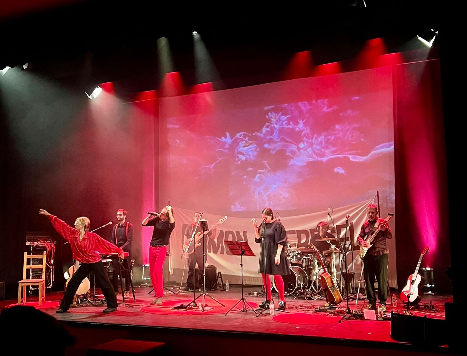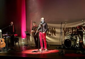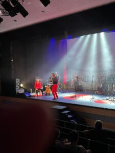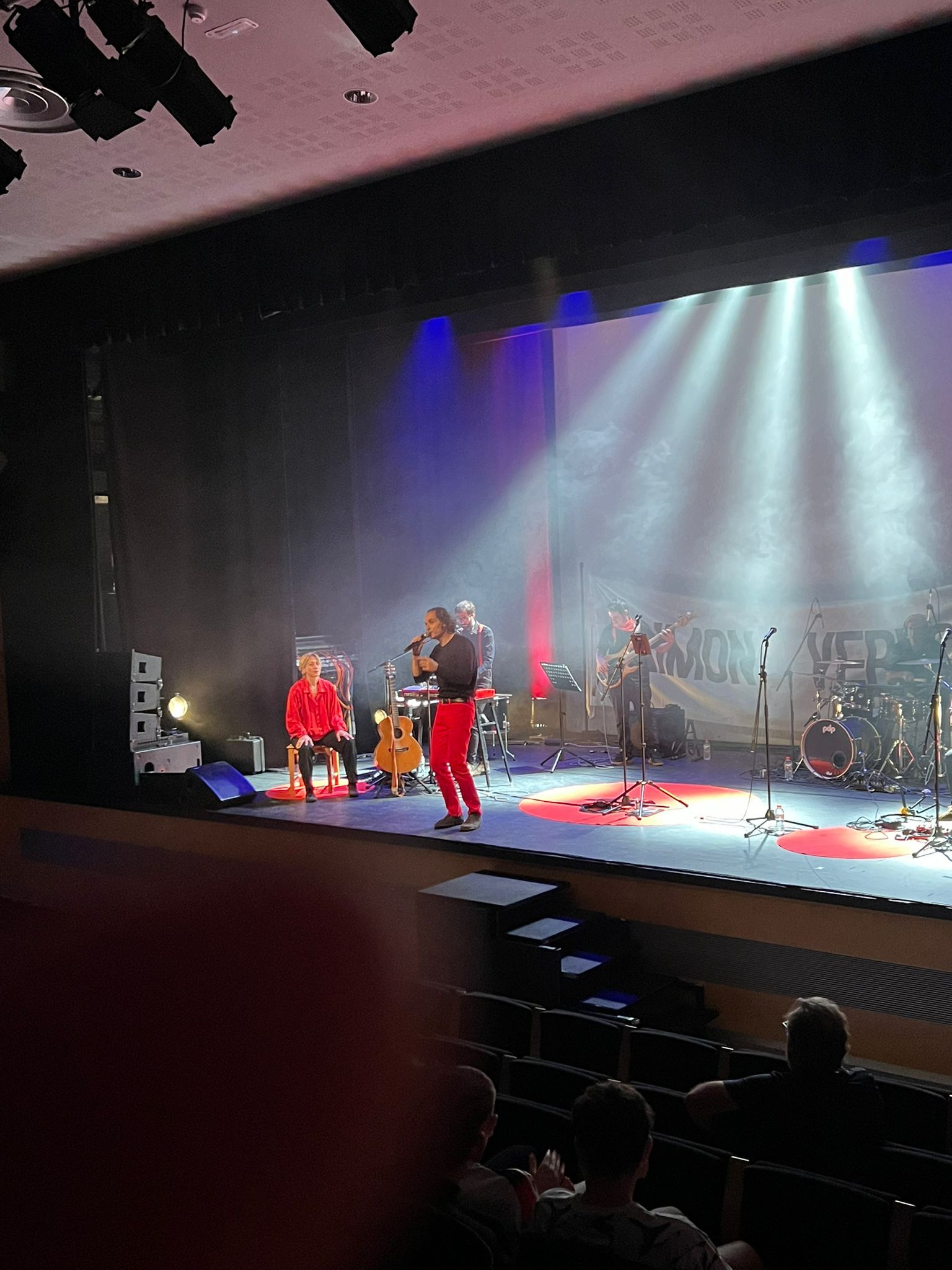 Aquest divendres 24 d’octubre els alumnes de les quatre classes de batxillerat de l’Institut El Morell han anat al Teatre Auditori El Morell a gaudir d’un espectacle de Verdcel, que versionava amb un toc pop-rock modern una dotzena de temes de Raimon, que prèviament havíem treballat a les classes de català. L’espectacle incloïa dansa i videoprojeccions i ha agradat molt a tothom.
