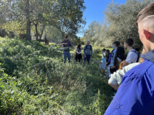 El biòleg Àlex Benítez, responsable de projectes i educació ambiental a l’Associació Aurora, encarregada d’aquest treballs, va explicar als alumnes les actuacions que han realitzat a l’espai com la lluita contra la canya, una espècie invasora, així com els plans de futur que inclouen la construcció d’una bassa per diferents amfibis.