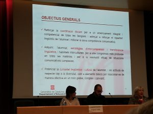 Però el que nosaltres volem subratllar ara mateix és l’AVANCEM, presentat per la inspectora Rosa Mª Codines i per la Directora de l’equip LIC, Núria Rofes. Un programa que també ha canviat de nom, a mesura que s’ha anat implantant. Abans era el TIL (tractament integral de les llengües), i, tal com veieu a la foto de sota /sobre, el nostre institut, juntament amb el Martí Franquès, en vam ser els pioners a les comarques tarragonines. En concret, vam estar perfilant-lo a partir de la primavera del 2016 i el vam implementar per primer cop durant el curs següent el 2016-2017, en una proposta de fer una revista, proposta compartida no només per les àrees lingüístiques (català/ castellà/ llatí i anglès), sinó que vam anar més enllà i també hi van particpar els de Socials, Naturals, Tecnologia, Educació Física i Educació Visual i Plàstica. Un projecte que és reconegut pel Departament com a modèlic.