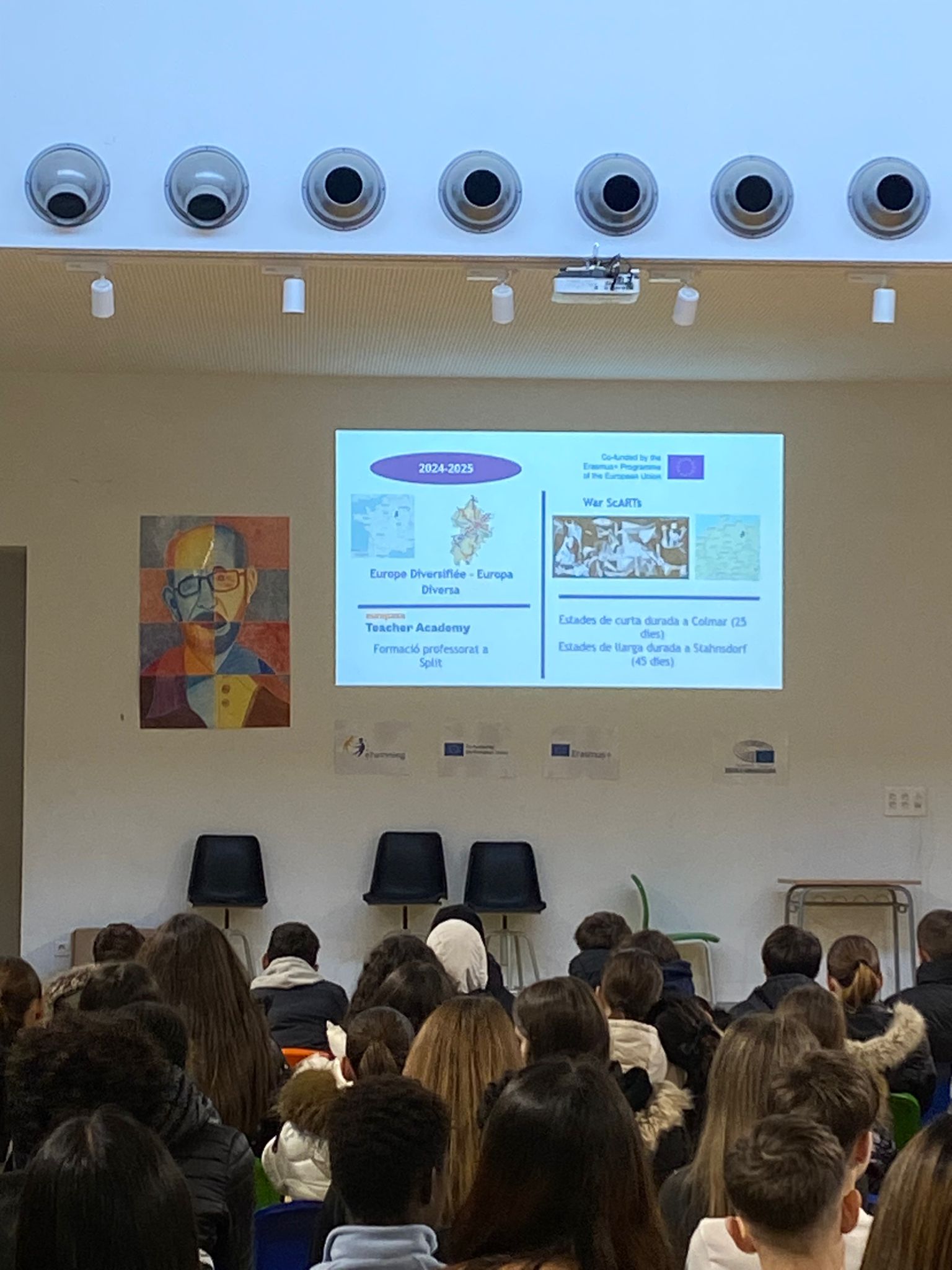 L’equip de projectes internacionals ha organitzat avui una sessió informativa per l’alumnat del centre de 3r i 4t ESO. La professora coordinadora, Ana Novoa, ha explicat les accions dels nostres projectes, especialment els actuals, i les possibilitats que ofereixen a alumnat i professorat dins de l’àmbit de la nostra acreditació Erasmus KA120.