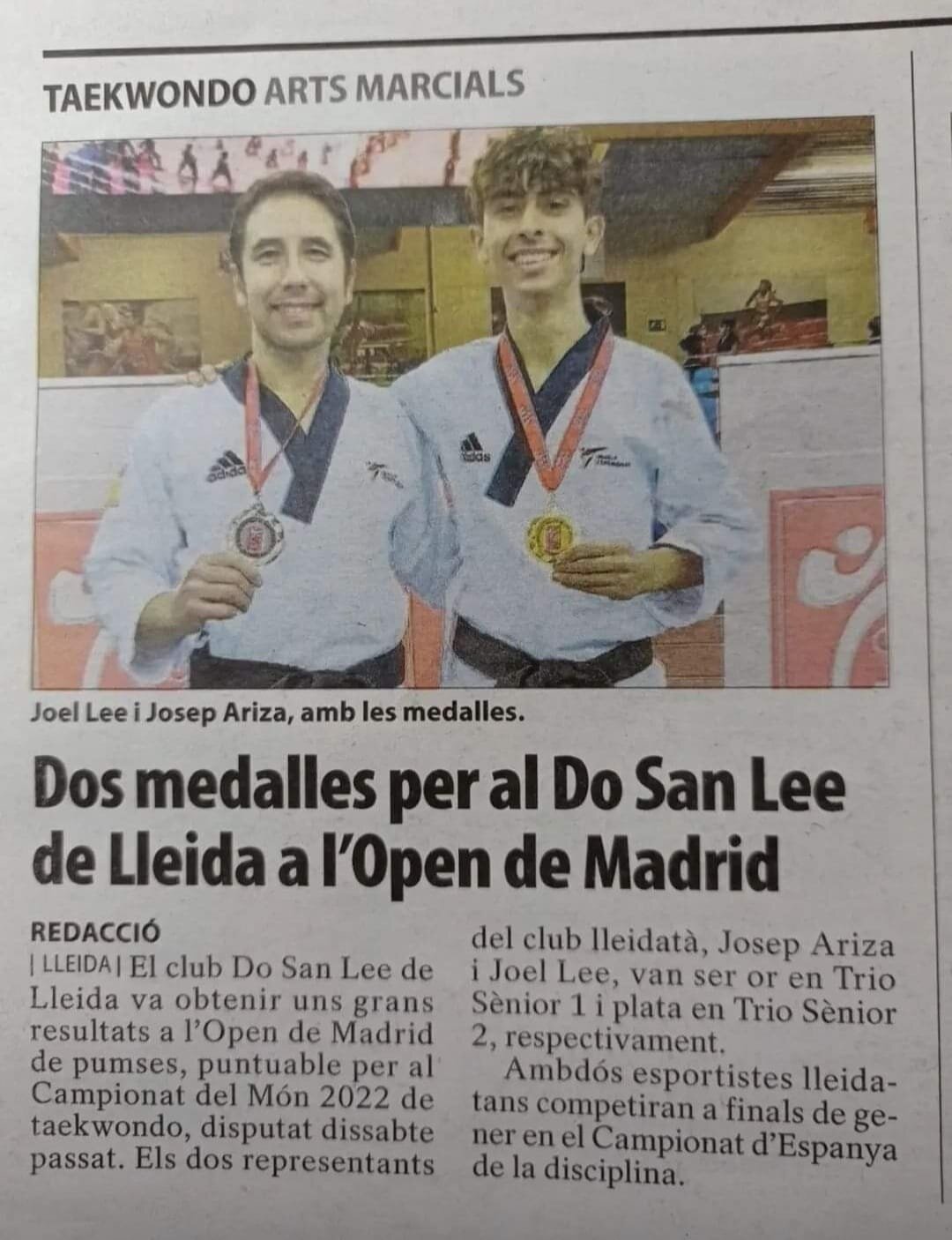 Volem felicitar a l’alumne de 2n de Batxillerat Josep Ariza per la medalla d’or aconseguida a l’Open de Madrid de pumses, esperant ara competir en el Campionat d’Espanya. Cal valorar molt el seu compromís esportiu, que compagina amb la seva activitat lectiva.