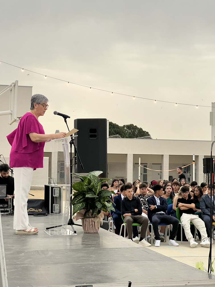 L’acte va començar amb un parlament inaugural per part de la directora, Ester Llovera, la qual va felicitar els nois i les noies de 4t i els va desitjar tota la sort del món en la seva nova etapa futura.