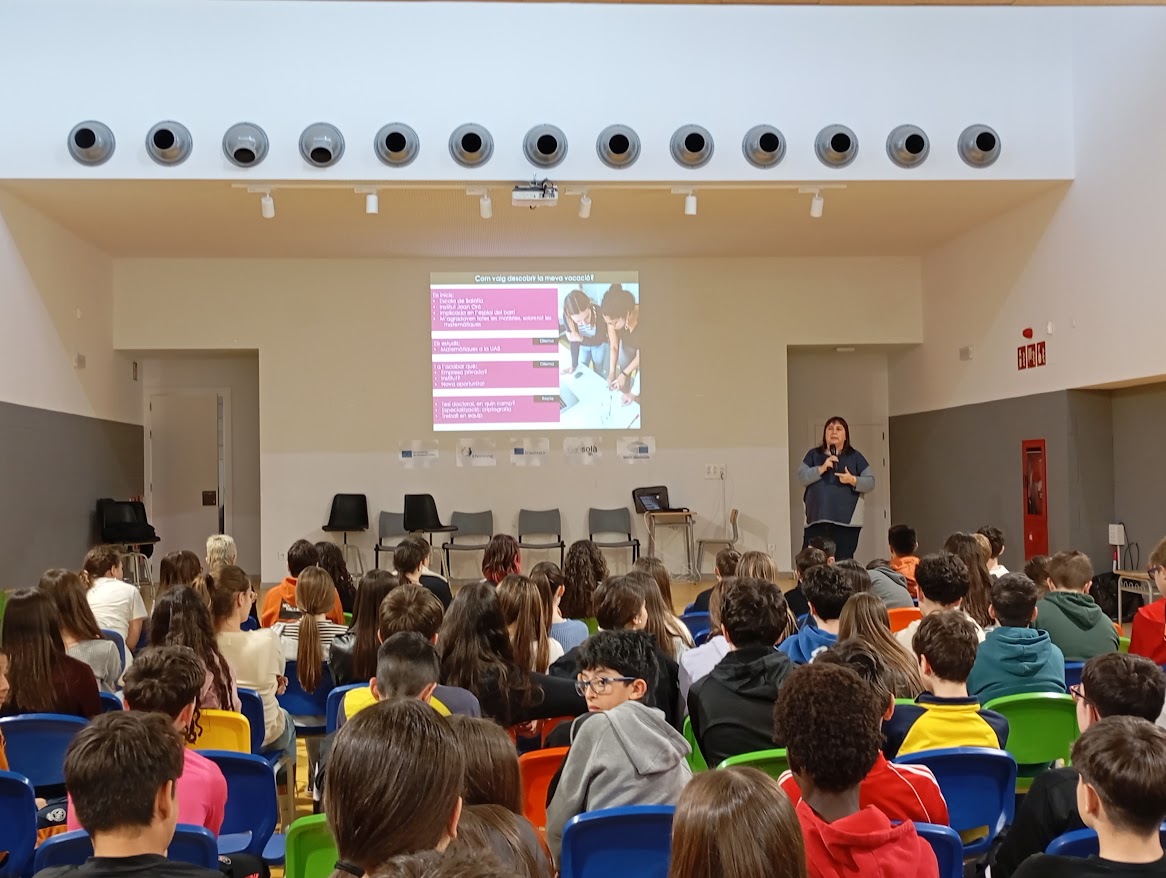 Posteriorment, la Sra. Magda Valls va fer una conferència molt interessant adreçada a l’alumnat de 2n ESO sobre les vocacions científiques, sobretot motivant també a l’alumnat femení a seguir la seva vocació sense valorar-la com a masculina o femenina.