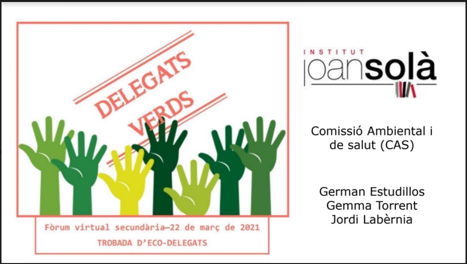 Durant la mateixa trobada, German Estudillos, professor coordinador del programa Escola Verda a l’Institut Joan Solà, ha explicat al professorat de la resta de centres el nostre treball per potenciar la participació de l’alumnat en les iniciatives ambientals, que desenvolupem al nostre centre amb el paper del Comitè Ambiental i de Salut, utilitzant l’eina participativa Google Classroom. Us n’adjuntem la presentació.