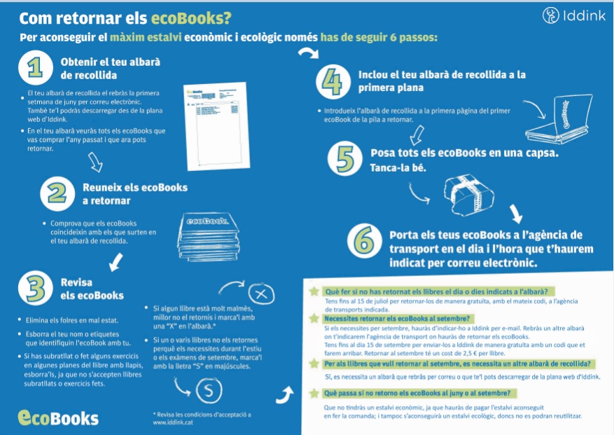 En aquest document hi teniu les instruccions per retornar els llibres reutilitzats durant el curs 2019-2020, que són gestionats per l’empresa Iddink.