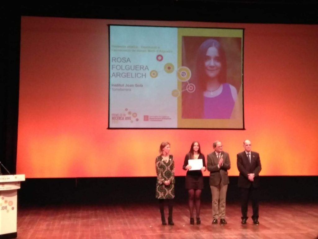 La nostra ex-alumna Rosa Folguera ha recollit el 22 de desembre el Premi de Recerca Jove que se li ha atorgat pel seu treball de recerca de 2n de Batxillerat “Herència atípica: revolució a l’Associació de Dones Merli d’Alguaire”. A més a més, ha fet de portaveu del grup d’alumnes premiats.
