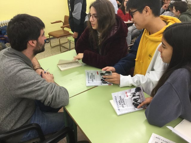 El passat 31 de gener els alumnes de 4t d’ESO van poder xerrar durant una hora amb el Roc Casagran, autor de la novel·la que tant els ha agradat d’aquest 2n trimestre: Ara que estem junts. La xerrada va ser tot un èxit i els alumnes li van poder preguntar totes les curiositats i inquietuds que tenien. A més a més, en acabar el Roc va tenir l’amabilitat de dedicar-los els seus exemplars del llibre. Aquests alumnes han preparat un joc d’escapada o room escape relacionat amb la novel·la i el camp de refugiats d’Argelers.