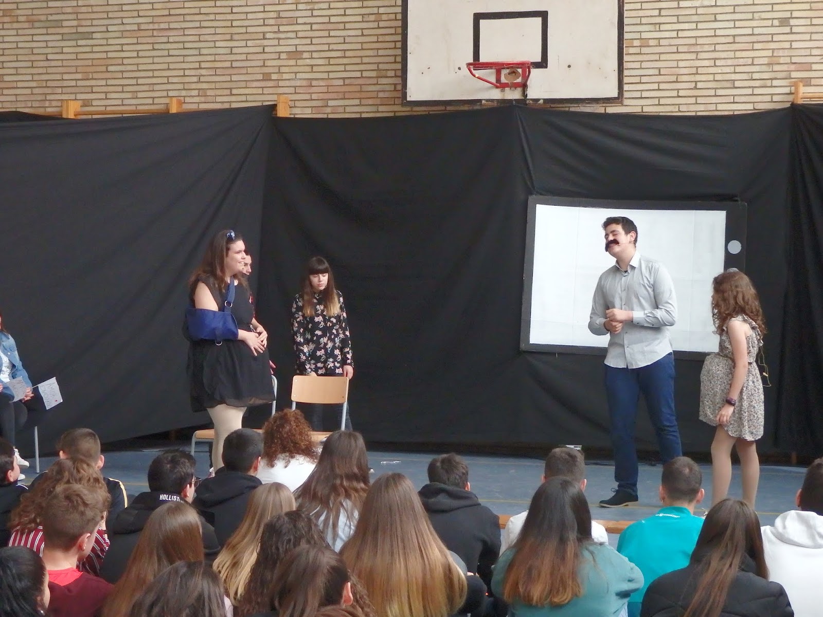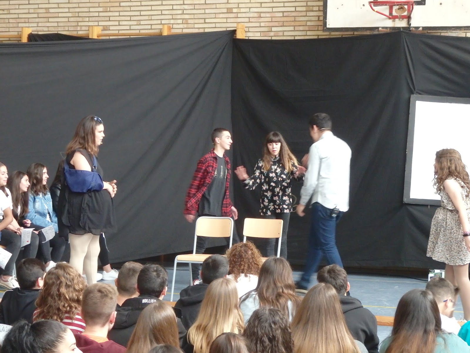 També hem vist l’obra de teatre “TELEFEM, NO CANVIEU LA SINTONIA” (Experiment multimèdia en sis quadres i cinc curts) d’Ernesto Martín, representada pel grup de teatre de l’institut, dirigit per Ana Caja i Isabel Fernàndez.