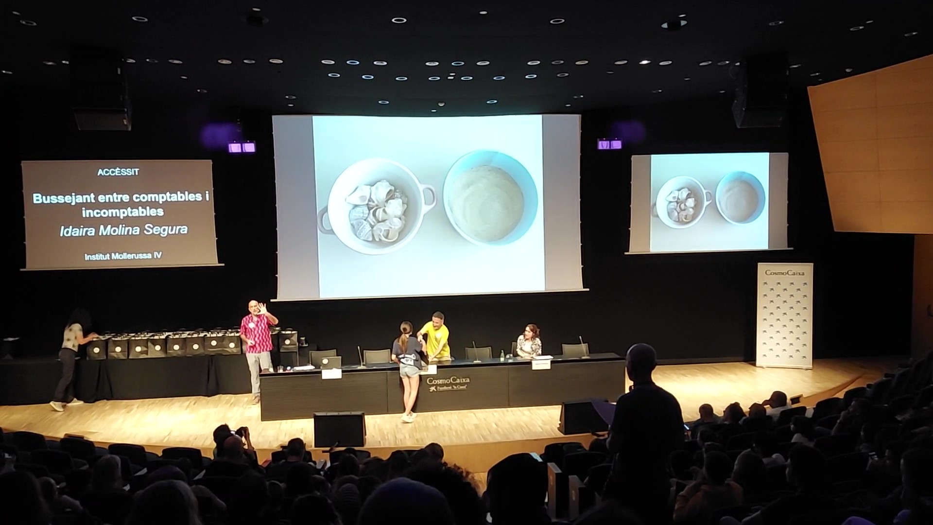 La setmana passada se’ns va informar que havia estat escollida entre les 7 millors fotos del nivell12 (que inclou els cursos 1r i 2n de la ESO) i ens van convidar a assistir a l’entrega de premis que va tenir lloc a l’auditori del CosmoCaixa el 24 de maig.