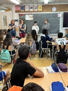 Els alumnes de 1r d’ESO, dins de la matèria d’ERG, s’han desplaçat a l’escola Les Arrels amb l’objectiu de sensibilitzar a l’alumnat de 4t, 5è i 6è de primària mitjançant diverses activitats per promoure les actituds respectuoses vers els altres i prevenir l’assetjament escolar.