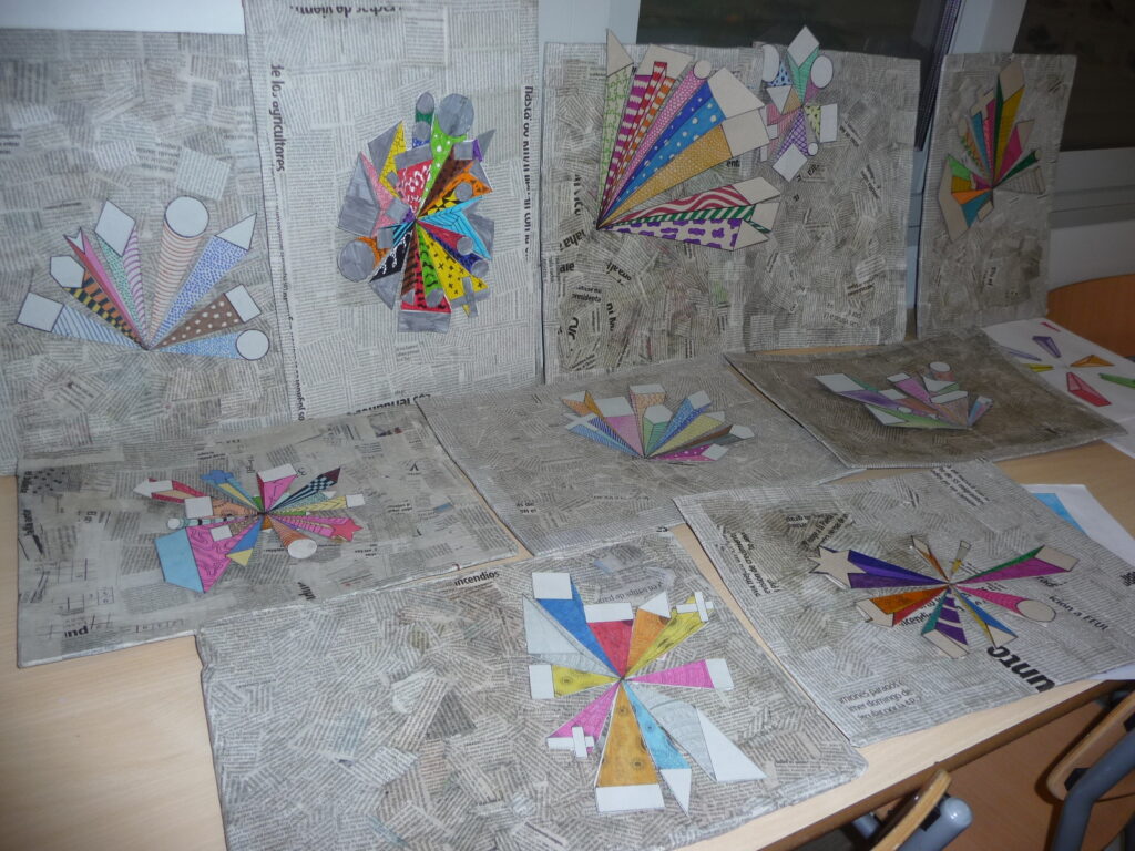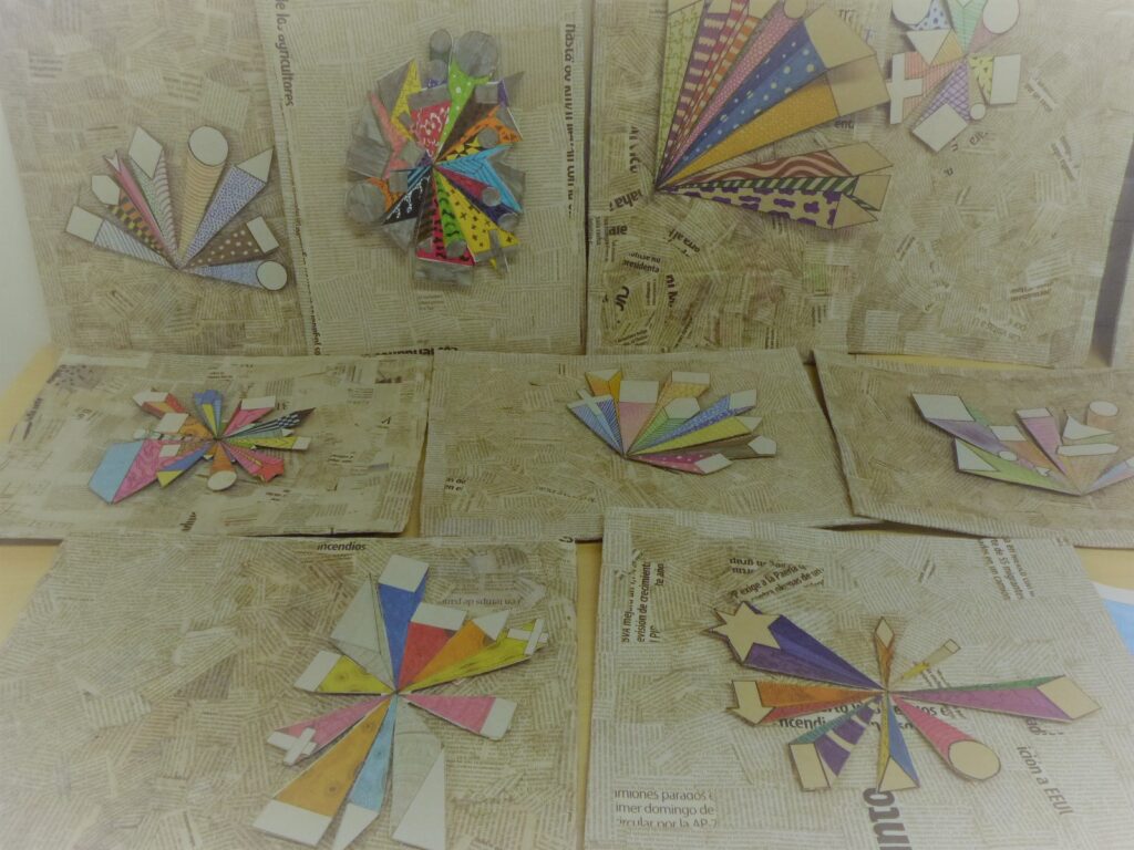 Aquesta vegada els alumnes de l’optativa de Visual i Plàstica de 4t d’ESO, s’han endinsat en la perspectiva per aconseguir un efecte 3D. Ho han realitzat tenint en compte els principis de l’Upcycling: cartró reutilitzat, papers de diari i cartró prim d’envasos alimentaris.