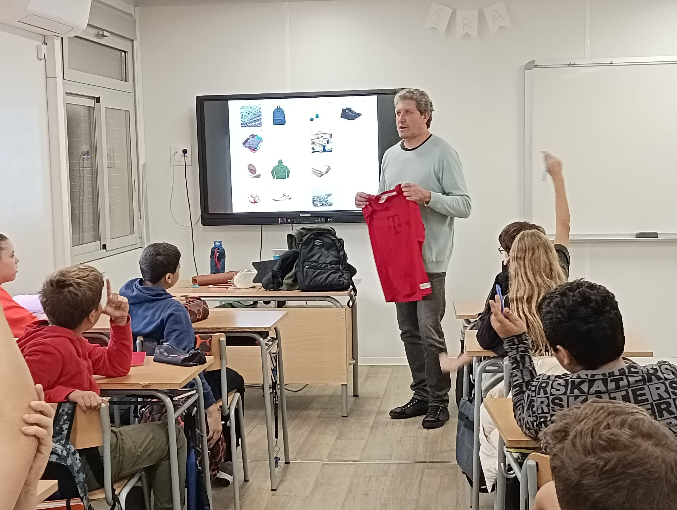 El biòleg Ton Aymemí, del projecte CAPgira, va visitar el passat dimarts 24 d’octubre l’Institut per fer una xerrada sobre els residus i el reciclatge als alumnes de 1r d’ESO. La xerrada va ser divertida i els alumnes van poder descobrir diversos objectes fets amb materials reciclats: un monopatí fet de xarxes de pesca, unes sabatilles esportives fetes amb residus orgànics, o una dessuadora fabricada amb marro de cafè. El motiu de la xerrada era aportar informació i conscienciació sobre la recollida selectiva i també va servir per al projecte FAKE RESIDUS que fan els alumnes de 1r ESO durant aquest trimestre.
