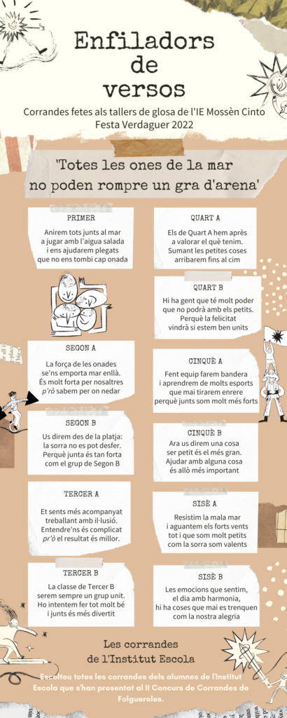 LES NOSTRES CORRANDES QUE PODREU ESCOLTAR AVUI A LA MOSTRA Feu un comentari / Per admin / 13 de maig de 2022 / 1r 2n 3r 4t 5è 6è