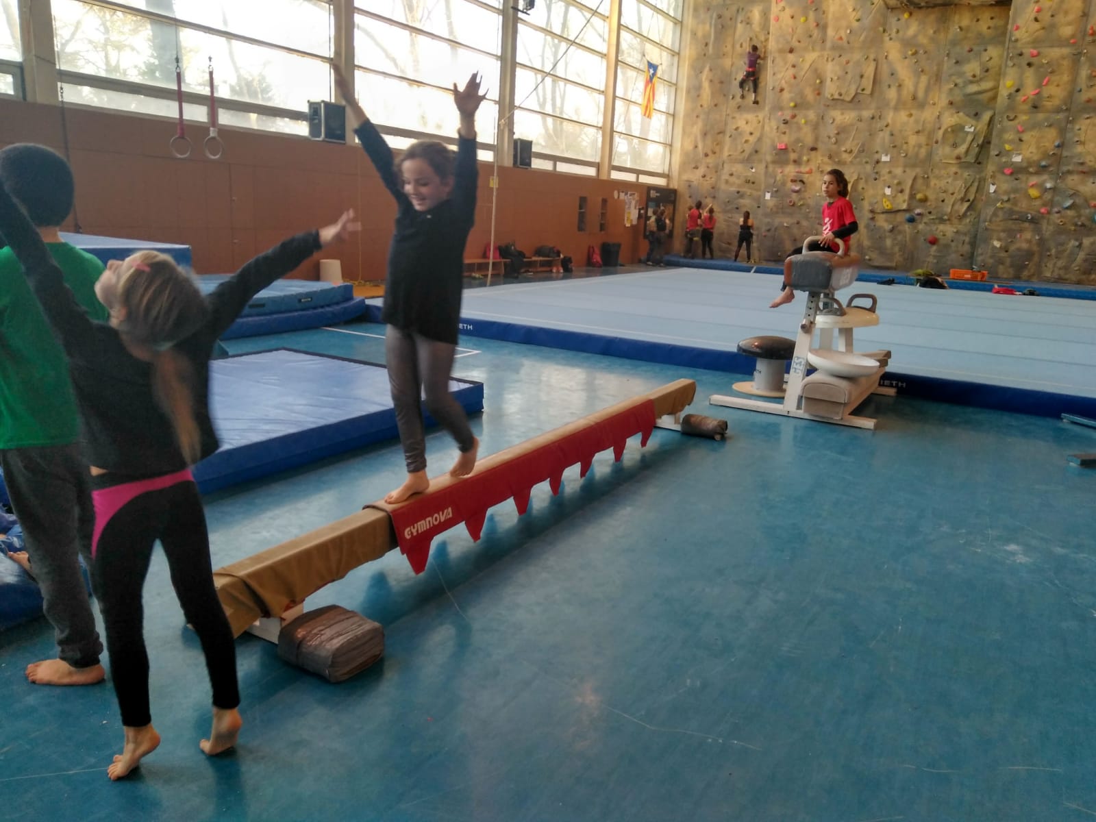 A la tarda, després de recuperar forces amb un bon dinar a l’esplanada de l’Ausoneta, vam poder gaudir i experimentar una gran diversitat d’activitats i elements gimnàstics com les anelles, el llit elàstic, la barra fixa, o d’equilibri… tot sota la direcció del cos tècnic d’entrenadores del Club Gimnàstic Vic, que ens van convidar a tornar-hi un altre dia.