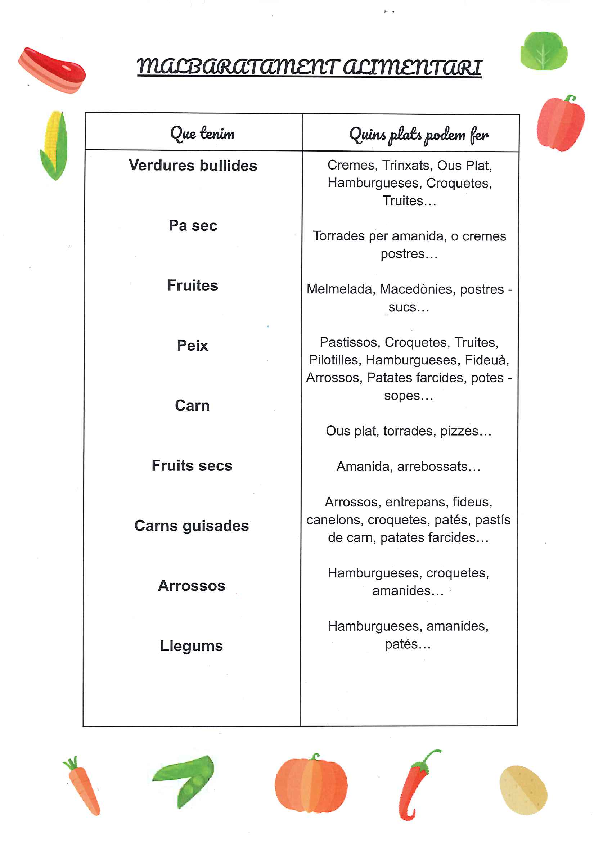 El taller, va consistir en utilizar els aliments sobrants o a punt de fer-se malbé. El més important que vam observar va ser que s’ha de comprar bé i el que es necessita.