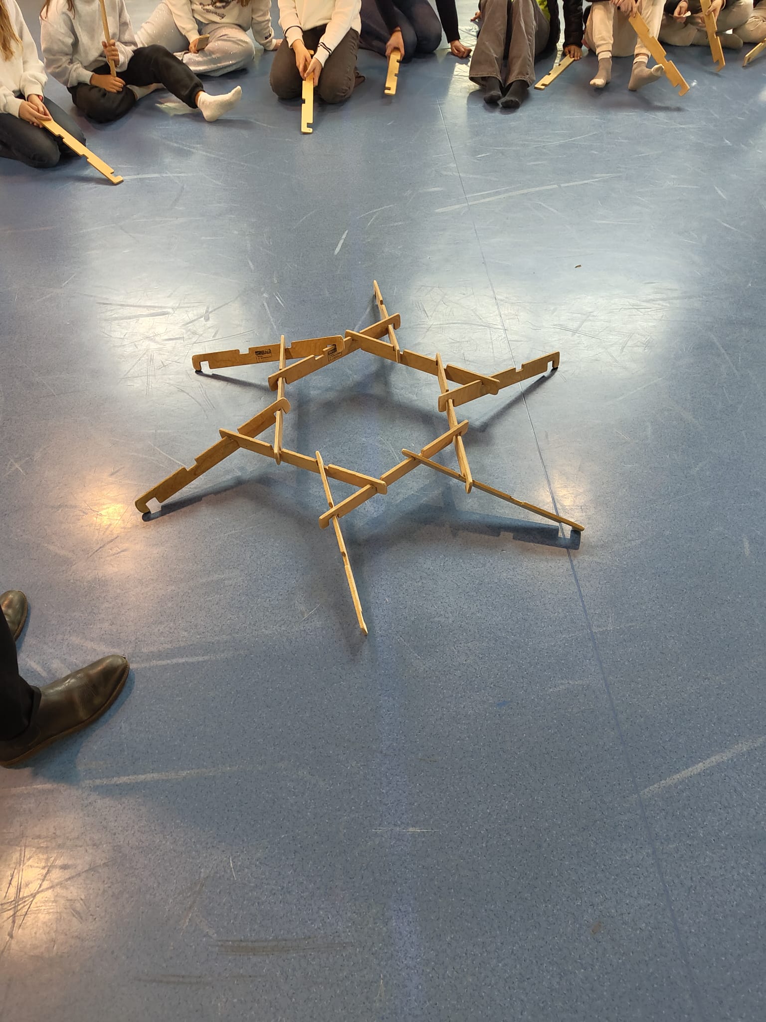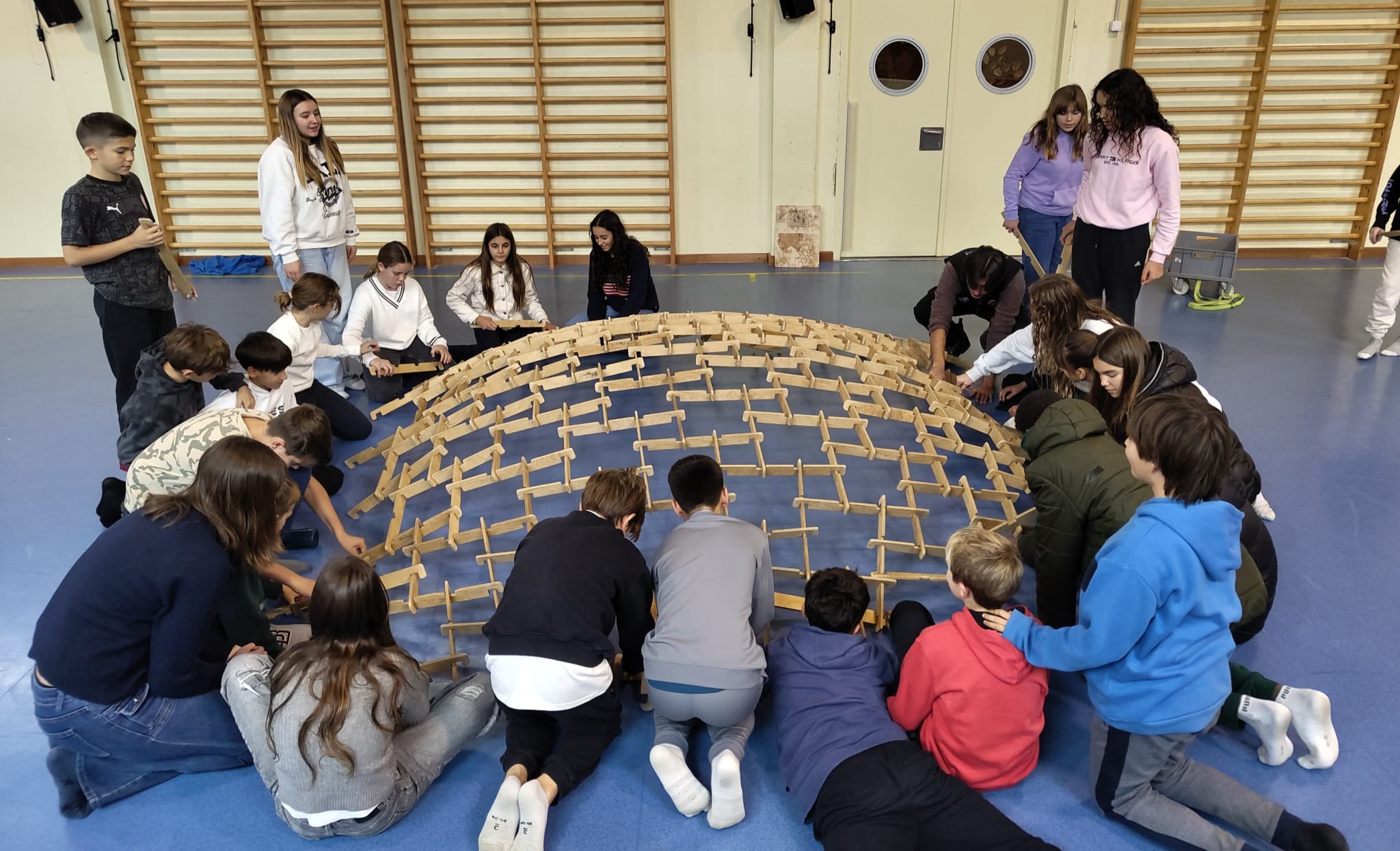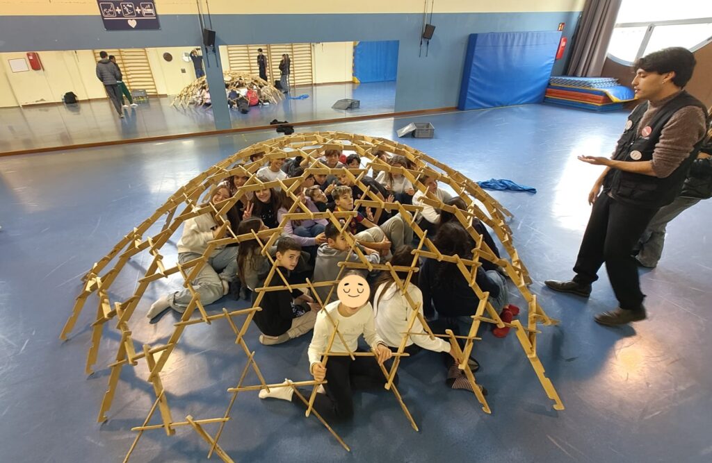 El segon taller va estar dedicat a la famosa cúpula de Leonardo da Vinci, una construcció autoportant basada en la geometria i en la distribució intel·ligent de pesos. Guiats pels educadors del MMACA, els alumnes van treballar col·laborativament per construir una estructura estable utilitzant peces de fusta, sense claus ni cap mena d’unió permanent.