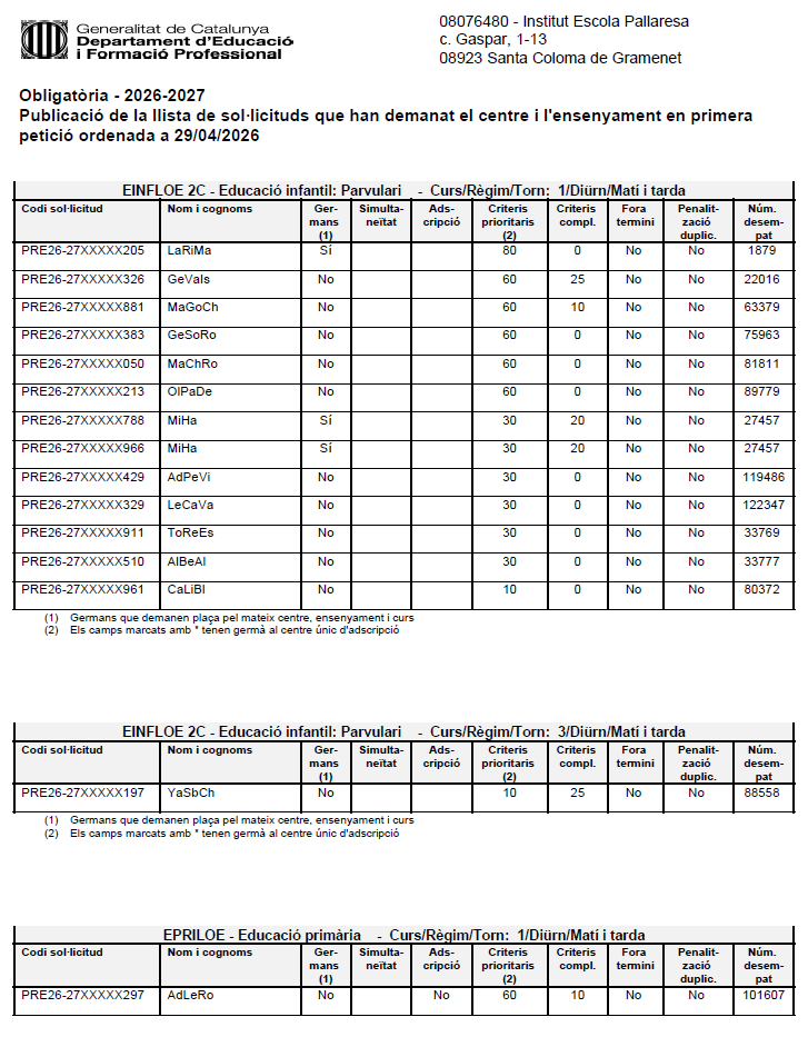Accedeix a la publicació del llistat de puntuació ordenada de places pel curs 2026-2027.