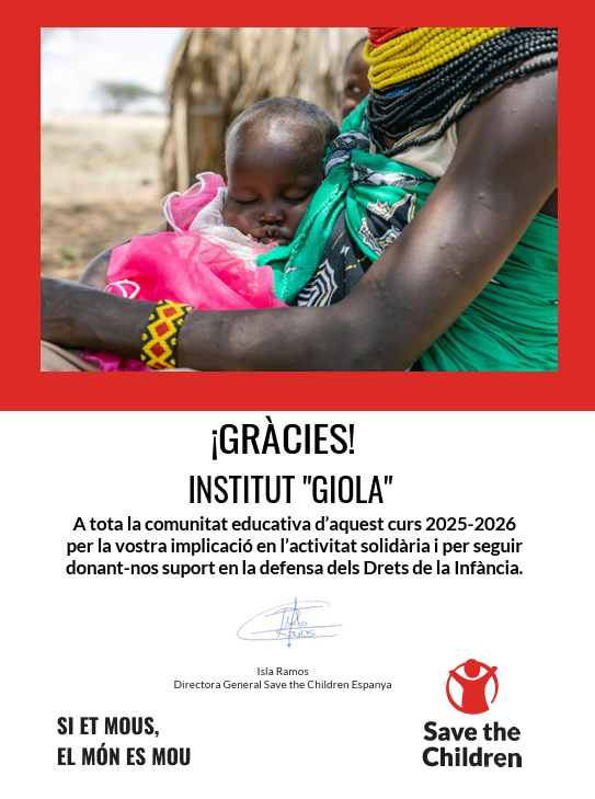 Cursa Solidària Giola & Save the ChildrenPer admin / 24/03/2026 / Portada El passat 19 de desembre a l’Institut Giola vam organitzar una cursa solidària per la qual vam recollir 330€ que es van aportar a l’associació Save The Children.