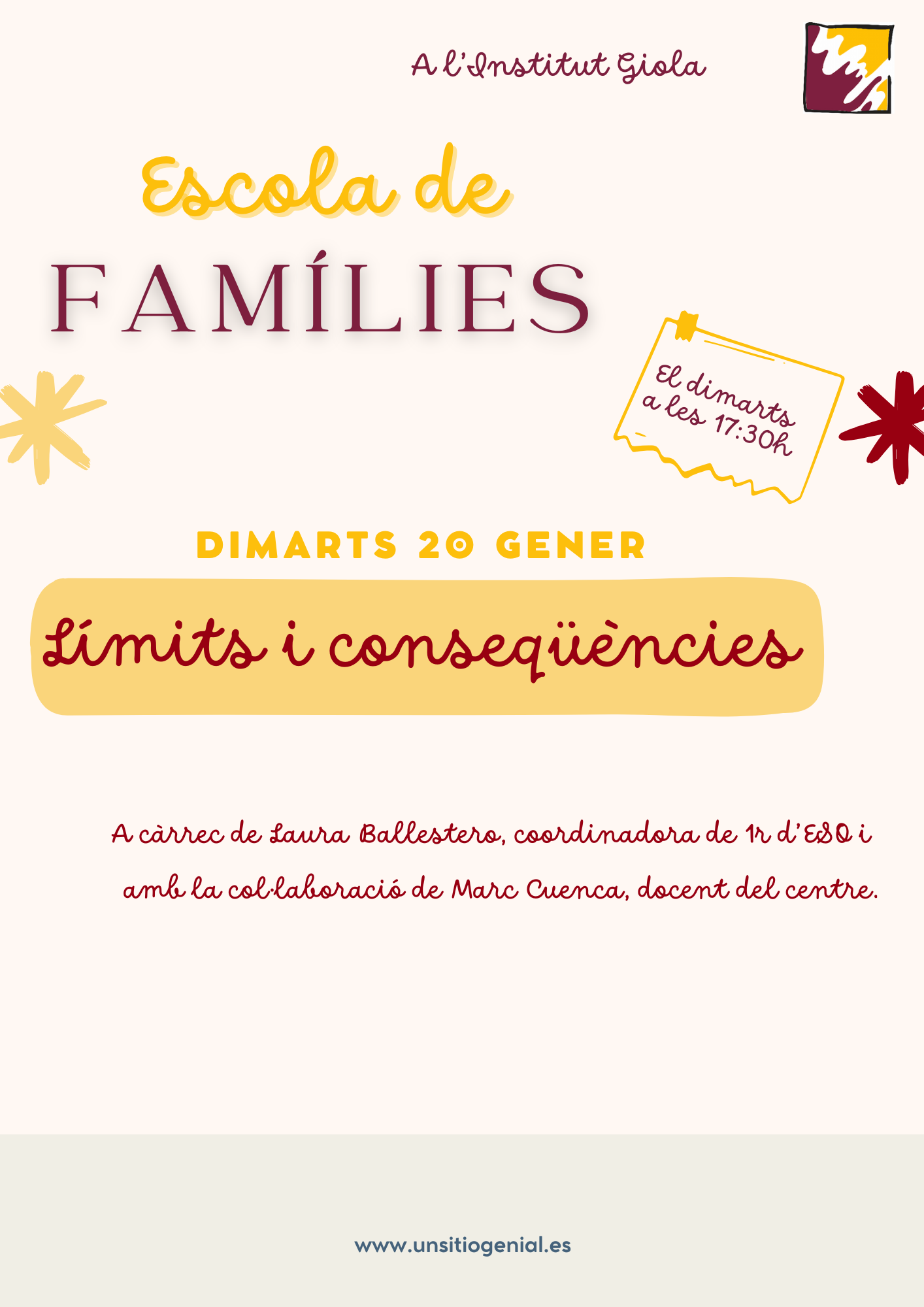 Amb l’any nou arrenquem un nou projecte a l’institut Giola. Encapçalat per la Laura Ballestero, coordinadora de 1r d’ESO, neix l’Escola de famílies.