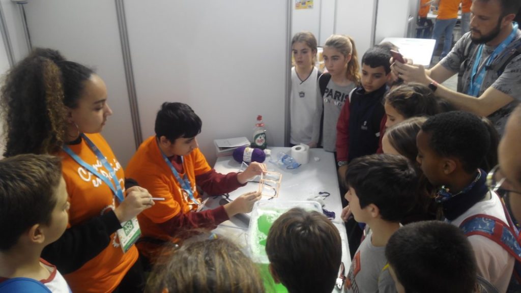 A la fira, els alumnes van presentar diversos projectes com l’ús de les bombolles per a l’aprenentatge de la geometria, el projecte XYZstars i EXOS sobre Constel·lacions i Exoplanetes, diverses estratègies manipulatives de resolució de problemes matemàtics i la Taula Periòdica. A més, van poder visitar els diversos Stands de la fira i aprendre sobre robòtica, domòtica, programació, i experiments científics de física, química, astronomia i biologia.