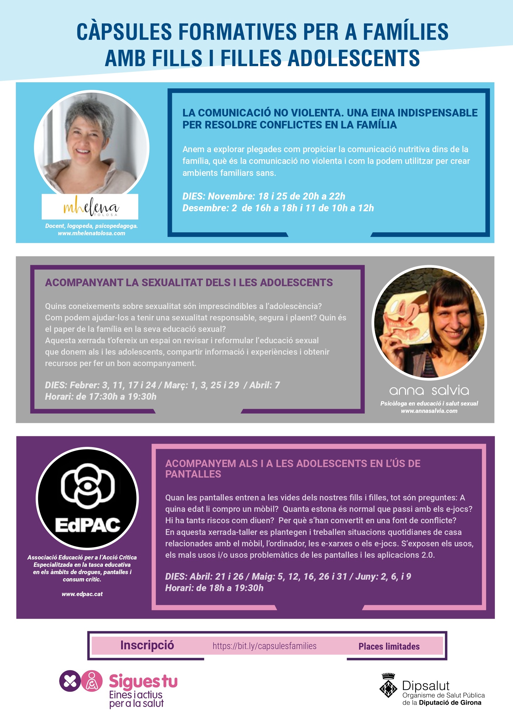 Famílies recordeu que us podeu inscriure a les càpsules de formació del programa SIGUES TU Ja estan obertes les inscripcions per participar en la càpsula de formació sobre sexualitat.