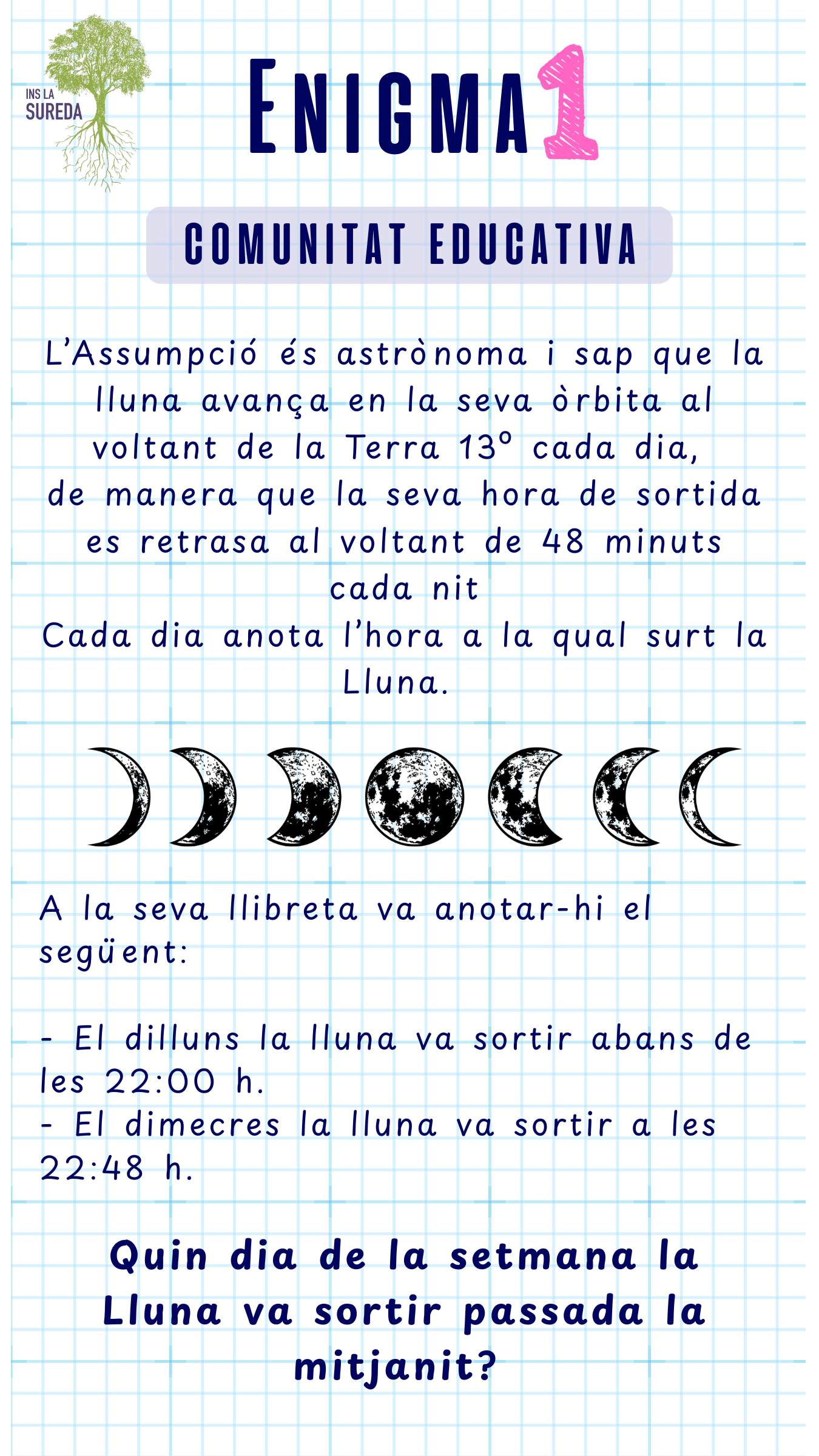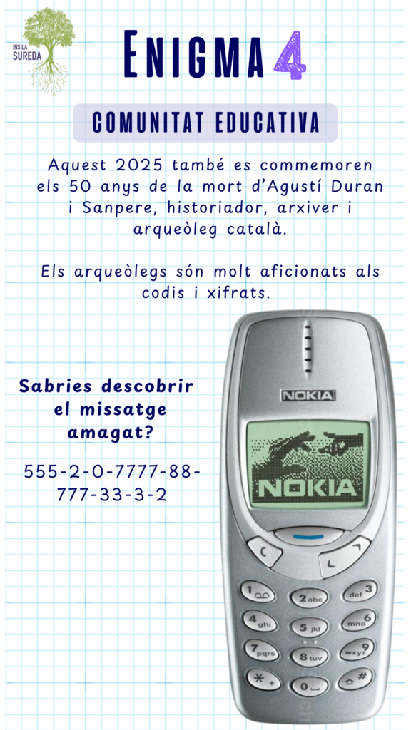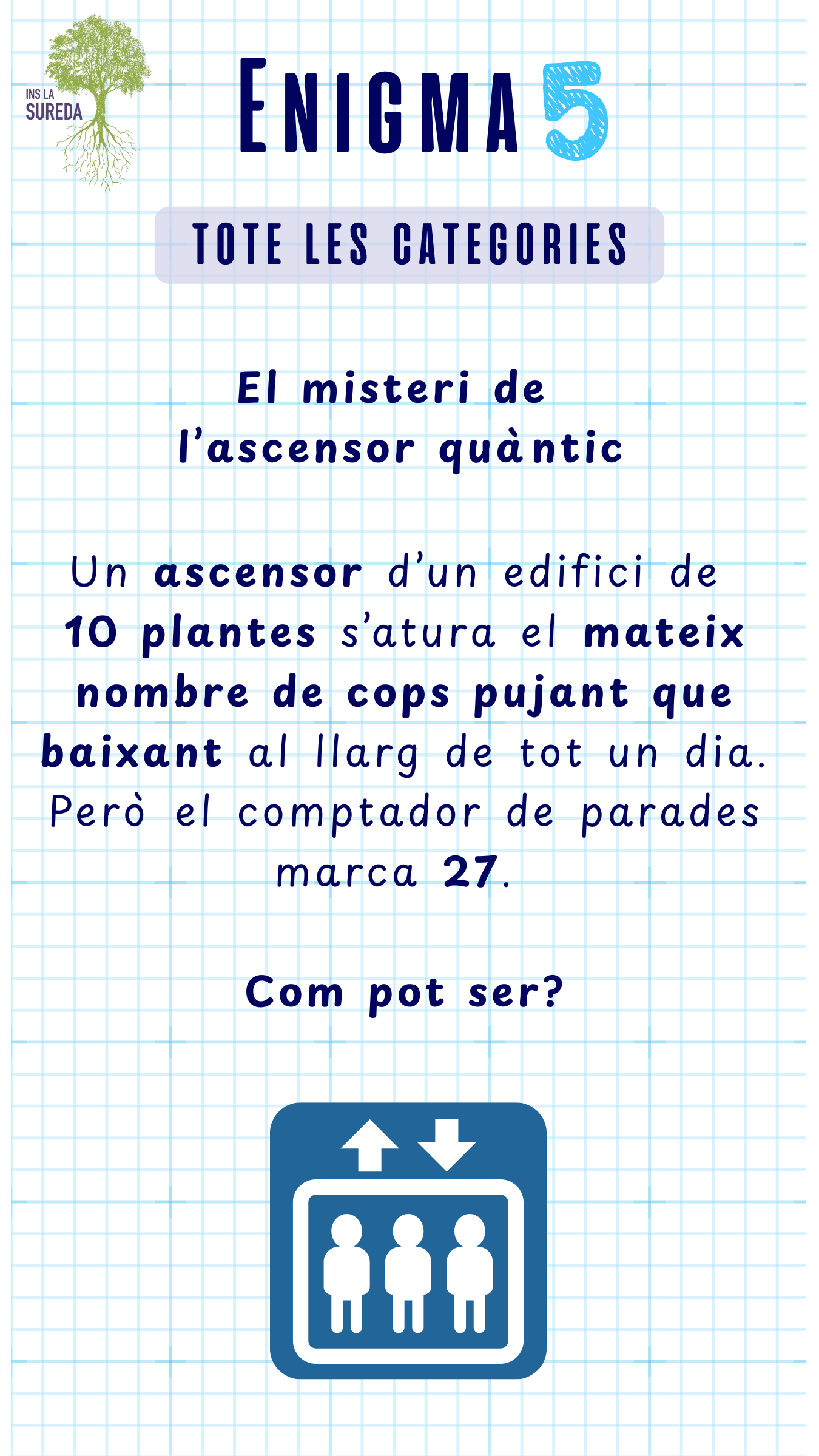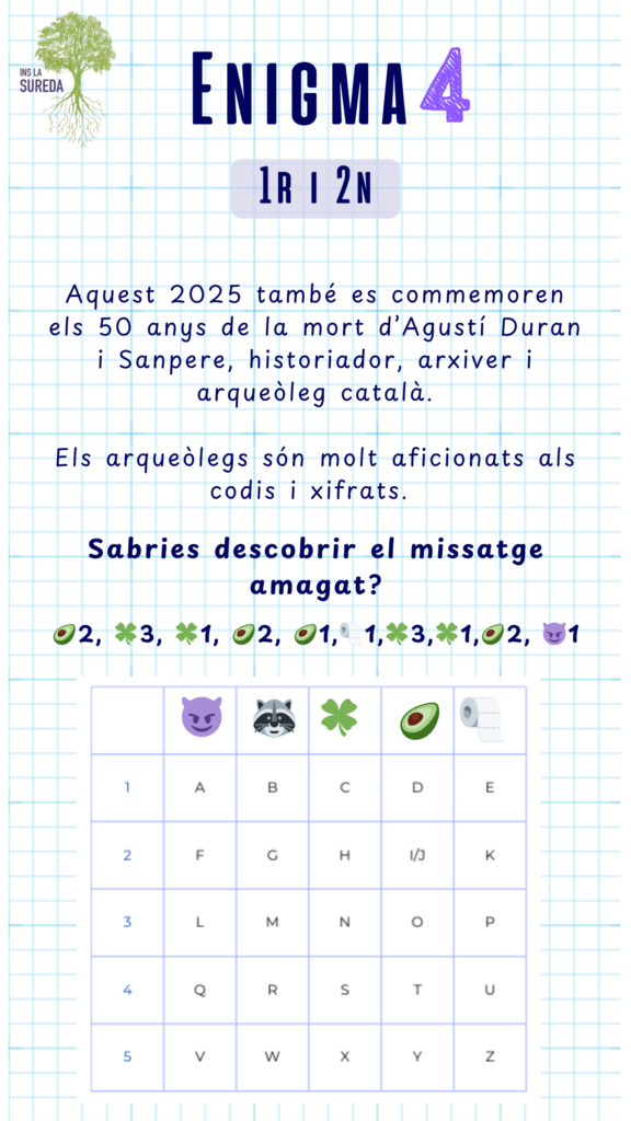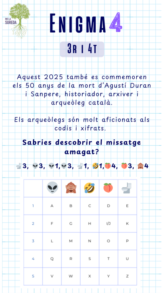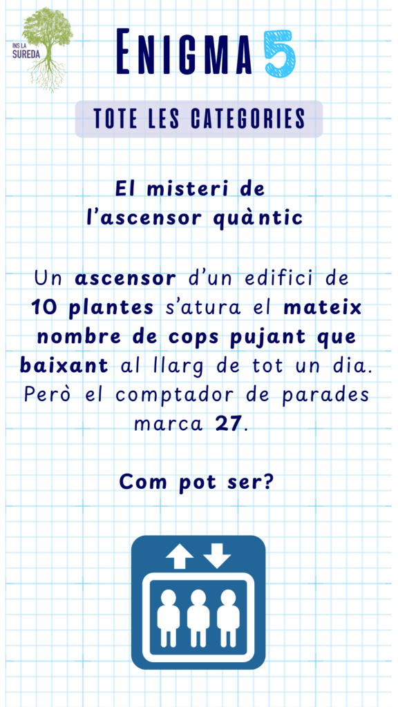 ATENCIÓ! Fixeu-vos bé en el títol per comprovar que esteu resolent l’enigma de la categoria que us correspon!